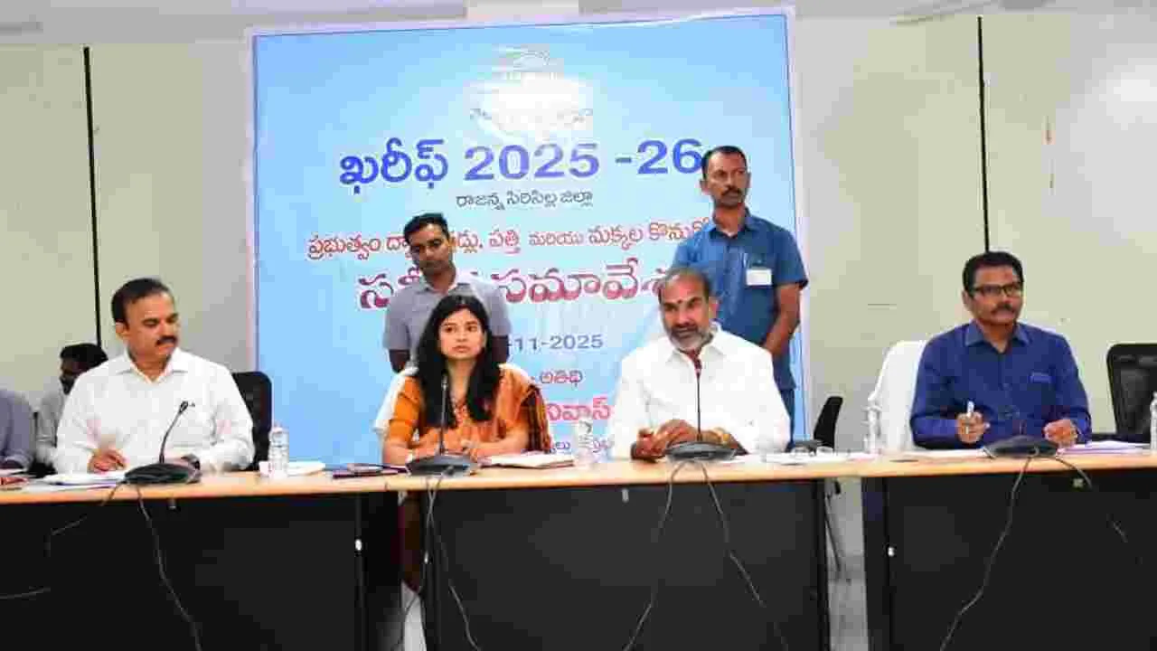సిరిసిల్ల, నవంబరు 13 (ఆంధ్రజ్యోతి): ఆరుగాలం కష్టపడి పండించిన పంట ఉత్పత్తులు, చివరి ధాన్యం గింజ కొనుగోలు వరకు రైతులకు అధికారులు అండగా ఉండాలని ప్రభుత్వ విప్ ఆది శ్రీనివాస్ సూచించారు. ఖరీఫ్ సీజన్-2025-26 వరి, పత్తి, మక్కల కొనుగోళ్లపై గురువారం రాజన్న సిరిసిల్ల జిల్లా సమీ కృత కార్యాలయాల సముదాయంలోని ఆడిటోరియంలో జిల్లా ఇన్చార్జి కలెక్టర్ గరిమ అగ్రవాల్ సమీక్ష సమావేశం నిర్వహిం చారు. ముందుగా జిల్లాలో 4.50 లక్షల మెట్రిక్ టన్నుల ధాన్యం వస్తుందని వ్యవసాయ అధికారులు అంచవేశారని, దాదాపు 3 లక్షల మెట్రిక్ టన్నుల ధాన్యం కొనుగోలు చేసేందుకు ఏర్పాటు చేస్తున్నామని ఇన్చార్జి కలెక్టర్ గరిమ అగ్రవాల్ తెలిపారు. ఐకేపీ 156, పీఏసీఎస్ 72, డీసీఎంఎస్ ఒకటి, మెప్మా ఆధ్వ ర్యంలో 7 కేంద్రాలతో 236 ధాన్యం కొనుగోలు కేంద్రాలు ప్రారం భించామని, సీసీఐ ఆధ్వర్యంలో ఐదు కొనుగోలు కేంద్రాలు, మార్క్ఫెడ్ ఆధ్వర్యంలో మక్కల కొనుగోలుకు రెండు కొనుగోలు కేంద్రా లు ఏర్పాటు చేశామని వెల్లడించారు. 70వేల మెట్రిక్ టన్నుల ధాన్యం, 17 వేల క్వింటాళ్ల పత్తి కొనుగోలు చేశారని తెలిపారు. ఈ సందర్భంగా ప్రభుత్వ విప్ ఆది శ్రీనివాస్ మాట్లాడుతూ ప్రజా ప్రభుత్వం ముఖ్య మంత్రి రేవంత్ రెడ్డి, మంత్రులు ఉత్తమ్ కుమార్ రెడ్డి, తుమ్మల నాగే శ్వరరావు ఆధ్వర్యంలో రైతులకు అండగా నిలుస్తుందని, వారి సంక్షేమా నికి అనేక పథకాలు అమలు చేస్తుందని తెలిపారు. 20 నెలల కాలం లో రాష్ట్ర వ్యాప్తంగా రూ లక్ష కోట్లకు పైగా రైతు సంక్షేమ అభివృద్ధి కార్యక్రమాలకు ప్రభుత్వం నిధులు వెచ్చించిందని వెల్లడించారు. రూ 20వేల కోట్లకు పైగా రుణమాఫీ రైతులకు చేసిందని తెలిపారు. ఇప్ప టికే జిల్లాలోని ఆయా మండలాల్లో ధాన్యం కొనుగోలు కేంద్రాలు ఏర్పాటు చేసి మద్దతు ధరకు ధాన్యం కొనుగోలు చేస్తుందని స్పష్టం చేశారు. రైతులకు ఇబ్బందులు కలుగకుండా కొనుగోళ్లు చేయాలని సూచించారు. కొనుగోలు కేంద్రాల నుంచి రైస్ మిల్లులకు వచ్చే ధాన్యాన్ని ఎప్పటికప్పుడు దించుకొని సహకరించాలని, ధాన్యం కొను గోలు వివరాలు ఆన్లైన్ చేసి రైతుల బ్యాంక్ ఖాతాల్లో డబ్బులు జమ అయ్యేలా చూడాలని సూచించారు. లారీల కాంట్రాక్టర్లు తాము అగ్రిమెంట్ ప్రకారం వాహనాలు అందు బాటులో పెట్టీ, రైతులకు ఇబ్బంది కాకుండా చూడాలని, రవాణా శాఖ అధికారులు పర్యవేక్షణ చేయాలని ఆదేశించారు. రైస్ మిల్లర్లు ప్రభుత్వ నిబంధనలకు అనుగుణంగా సీఎంఆర్ ఇవ్వాలని, బ్యాంక్ గ్యారంటీ చెల్లించాలని సూచించారు. రైస్ మిల్లర్ల సమస్యలు పరిష్కరిస్తామని హామీ ఇచ్చారు. కౌలు రైతులు, ఇతర రైతుల వివరాలు ఉన్నతాధికా రుల దృష్టికి తీసుకెళ్లి, వారి పంట ఉత్పత్తులు విక్రయించుకోవడంలో ఇబ్బందులు తొలగించాలని సూచించారు. పంటల నమోదు ఆన్లైన్ పక్కాగా చేయాలని తెల