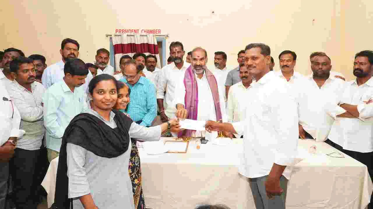 వేములవాడ రూరల్, జూన్ 27 (ఆంధ్రజ్యోతి) : తెలంగాణ రాష్ట్రం మెడికల్ హబ్గా మారిందని ప్రభు త్వ విప్, వేములవాడ శాసనసభ్యుడు ఆది శ్రీనివాస్ అన్నారు. స్థానిక మండల పరిషత్ కార్యాలయంలో వేములవాడ పట్టణ, అర్బన్ పరిధిలో అర్హులైన 76 మందికి కల్యాణక్ష్మి, షాదీముబారక్, 18లక్షల 80వేల రూపాయల ముఖ్యమంత్రి సహాయనిధి చెక్కులను ఎమ్మెల్యే ఆది శ్రీనివాస్ శుక్రవారం అందజేశారు. ఈ సందర్భంగా ఆయన మా ట్లాడుతూ వైద్యారోగ్య రం గంలో తెలంగాణ సాధిస్తు న్న ప్రగతి, ఇతర రాష్ట్రాల కు స్ఫూర్తిదాయకంగా మారిందన్నారు. ముఖ్య మంత్రిగా రేవంత్రెడ్డి పదవీ బాధ్యతలు చేపట్ట గానే ఆరోగ్యశ్రీ పరిమితిని రూ.5లక్షల నుంచి రూ.10 లక్షలకు పెంచి ప్రజారోగ్యం పై ప్రజా ప్రభుత్వానికున్న చిత్తశుద్ధిని చాటుకున్నార న్నారు. ఇప్పటికే ఈ ప్రాంతంలో ఎల్వోసీల ద్వారా దాదాపు 20కోట్ల రూపాయలు అందించడం జరిగింద న్నారు. గత ప్రభుత్వం రాష్ట్రాన్ని అప్పులకుప్పగా మార్చి తే ముఖ్యమంత్రి రేవంత్రెడ్డి గత ప్రభుత్వ పథకాలను రద్దు చేయకుండా అమలు చేస్తూ అభివృద్ధి పథంలో తీసుకెళ్తున్నారన్నారు. బీసీలకు 42 శాతం రిజర్వేషన్లు అమలు చేయడం జరుగుతుందన్నారు. రాజన్న ఆల యాన్ని అభివృద్ధి పథంలో తీసుకెళ్లడానికి కృషి చేస్తు న్నానన్నారు. ఎమ్మార్వో శ్రీనివాస్ రావు, కాంగ్రెస్ పార్టీ పట్టణ అధ్యక్షుడు చంద్రగిరి శ్రీనివాస్, కాంగ్రెస్ పార్టీ అర్బన్ మండల అధ్యక్షుడు పల్లి కనుకయ్య, మార్కెట్ కమిటీ వైస్ చైర్మన్ కనికరపు రాకేష్, నాయకులు పాల్గొన్నారు.