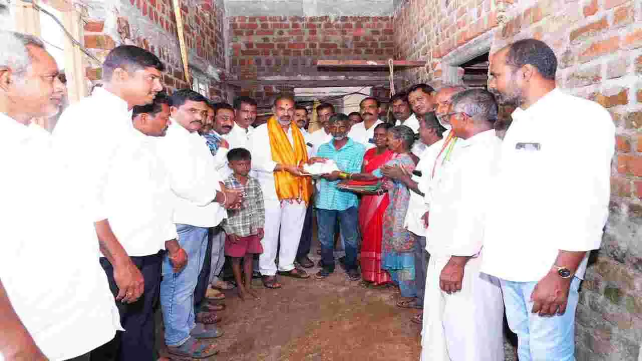 కోనరావుపేట, సెప్టెంబరు 26 (ఆంధ్రజ్యోతి) : కాంగ్రెస్ ప్రభుత్వ పాలనలో పేదింటి సొంతింటి కల నెరవేరుతోందని వేములవాడ ఎమ్మెల్యే, ప్రభుత్వ విప్ ఆది శ్రీనివాస్ అన్నారు. కోనరావుపేట మం డల కేంద్రంలో నూతన ఇందిరమ్మ ఇల్లు నిర్మించుకున్న ఎనగంటి వారి ఇంటికి వెళ్లి నూతన వస్త్రాలను శుక్రవారం కుటుంబానికి అందజేసి మాట్లాడారు. 10 సంవత్సరాలుగా సొంత ఇంటి కోసం ఎదురుచూస్తున్న పేదలకు కాంగ్రెస్ ప్రభుత్వ పాలనలో ఇందిరమ్మ ఇల్లు మంజూరు చేశామన్నారు. బీఆర్ఎస్ పాలనలో డబుల్ బెడ్ రూమ్ ఇళ్లు ఇస్తానని పేదలను మోసం చేశారనిఅన్నారు. కాంగ్రెస్ ప్రభుత్వ పాలనలో పేదవారి సొంతింటి కల నెరవేరిందని అన్నారు. ఈ కార్యక్రమంలో కేతిరెడ్డి జగన్మోహన్ రెడ్డి, చేపూరి గంగాధర్, మార్కెట్ కమిటీ చైర్మన్ ఎల్లయ్య, మండల అధ్యక్షుడు ఫిరోజ్పాషా, చందనగిరి గోపాల్, నాయని ప్రభాకర్రెడ్డి, రమేష్రెడ్డి, రుక్మిణి తదితరులు పాల్గొన్నారు.