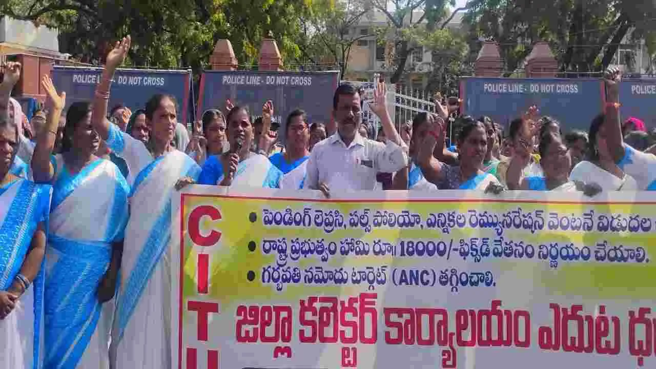 సుభాష్నగర్, డిసెంబరు 27(ఆంధ్రజ్యోతి): ఆశ కార్యకర్తలు ఎదుర్కొంటున్న సమస్య లను వెంటనే పరిష్కరించాలని సీఐటీయూ జిల్లా ఉపాధ్యక్షుడు ఎడ్ల రమేష్ అన్నారు. శనివారం జిల్లా కలెక్టర్ కార్యాలయం ఎదుట తెలంగాణ ఆశ వర్కర్స్ యూనియన సీఐటీయూ ఆధ్వర్యంలో ధర్నా నిర్వహించారు. ఈ సందర్భంగా ఆయన మాట్లాడుతూ 2022, 2023 సంవత్సరానికి సంబంధించి లెప్రసీ బిల్లులు అప్పటి డిఎంహెచ్వో ఆశ వర్కర్స్కు ఇవ్వకుండా దారి మళ్లించారని దీనిపై సమగ్ర విచారణ చేపట్టాలని, ప్రభు త్వం కఠిన చర్యలు తీసుకోవాలని డిమాండ్ చేశారు. 2024 బిల్లులు పోరాటం ద్వారా సాధించుకున్నామన్నారు. అధికారులు ఆశ వర్కర్స్తో పనిచేయించుకోవటం తప్ప ఆదుకొనే పరిస్థితి లేదన్నారు. యూనియన జిల్లా ప్రధాన కార్యదర్శి మారెళ్ల శ్రీలత మాట్లాడుతూ పెండింగ్ బిల్లులు ఒక్కో ఆశ వర్కర్కి 3 వేల వరకు రావాల్పి ఉంద న్నారు. ఇవ్వకుండా పని ఒత్తిడి పెంచే ప్రయత్నం చేస్తున్నారన్నారు. ఆశ వర్కర్స్ యూ నియన ఆధ్వర్యంలో అనేక పోరాటాలు చేయటం వల్లనే పారితోషికాలు పెంచు కున్నామన్నారు. బిల్లులు వచ్చేవరకు పోరాటం ఆపే ప్రస్తేకే లేదన్నారు. ఈ కార్యక్ర మంలో యూనియన జిల్లా అధ్యక్షురాలు కాల్వ సారిక, జిల్లా ఉపాధ్యక్షులు పద్మలత, శ్యామల, సరిత, జిల్లా సహాయ కార్యదర్శి సుమ, శ్యామల, ప్రియాంక, రజిత తదితరులు పాల్గొన్నారు.