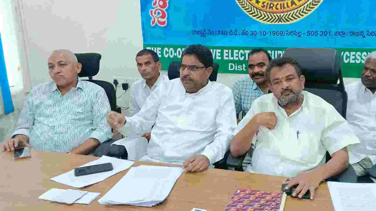 సిరిసిల్ల రూరల్, జూలై 2 (ఆంధ్రజ్యోతి) : సిరిసిల్ల సహకార విద్యుత్ సరఫరా సంఘం అభివృద్ధికి తమ పాలకవర్గం కృషి చేస్తోం దని, కావాలనే కొంతమంది అసత్యపు ప్రచారాలు చేస్తున్నారని సెస్ చైర్మన్ చిక్కాల రామారావు అన్నారు. సిరిసిల్ల సెస్ ప్రధాన కార్యాల యంలోని సమావేశ మందిరంలో బుఽధవారం ఏర్పాటుచేసిన విలేక రుల సమావేశంలో ఆయన మాట్లాడుతూ గత సెస్ పాలకవర్గం రూ 14కోట్లు రెవెన్యూను ఉంచగా, తమ పాలకవర్గం వచ్చిన రెండున్నర సంవత్సరాల్లో దానిని రూ.22 కోట్లకు పెంచి, సెస్ను అన్ని విధాలుగా అభివృద్ది చేస్తోందన్నారు. సిరిసిల్ల పట్టణంలో విద్యుత్ అధికంగా ఉప యోగించడం వలన అంతరాయాలు ఏర్పడుతున్నాయని దానిని పరి ష్కరించేందుకు కృషి చేస్తామన్నారు. సిరిసిల్లలో ఎస్ఎస్ఐ యూనిట్ సభ్యులకు 25 హెచ్పీల కరెంట్ను ఉచితంగా ఇవ్వాలని ఈఆర్సీని ప్రత్యేకంగా కోరానన్నారు. విద్యుత్ సబ్సీడీపై నేతన్నలు తనను అపా ర్థం చేసుకోవద్దన్నారు. సెస్ పరిధిలో ఏ పనులు చేపట్టిన కూడా పాల కవర్గం తీర్మానంతో పాటు టెండర్లతోనే చేయిస్తామని, ఇందులో ఎక్క డా కూడా అవకతవకలు జరిగే ప్రసక్తి లేదన్నారు. సిరిసిల్ల, వేముల వాడ పట్టణాల్లో నిరంతరం కరెంట్ను సరఫరా చేసేందుకు ఆ పట్టణా లకు నలుదిక్కులా ఉన్న సబ్స్టేషన్ల నుంచి ప్రత్యేకంగా విద్యుత్ లైన్ లు వేయించామన్నారు. సిరిసిల్ల పట్టణానికి అదనంగా రెండు 33/11 కేవీ విద్యుత్ సబ్స్టేషన్లు మంజూరు అయ్యాయని, రెవెన్యూ అధికా రులకు స్థలం ఇవ్వాలంటూ లెటర్లు ఇచ్చామని స్థలం చూపించిన వెంటనే సబ్స్టేషన్ల నిర్మాణాలు ప్రారంభిస్తామన్నారు. సెస్ పరిధిలో గతంలో 36విద్యుత్ సబ్స్టేసన్లు ఉండేవని తాము పాలకవర్గం ప్రస్తు తం 85 సబ్స్టేషన్లకు పెంచామన్నారు. రుద్రంగి మండల కేంద్రంలో 220కేవీ విద్యుత్ సబ్స్టేషన్ మంజూరైందన్నారు. అలాగే నేరేళ్ల, బోయి న్పల్లిలలో 220 కేవీ సబ్స్టేషన్లు మంజూరు కావాల్సి ఉందన్నారు. సెస్లో పనిచేసేందుకు సిబ్బందితోపాటు హెల్పర్లు, ఏఈలు లేరని ఆ పోస్ట్లను భర్తీచేయాలని ప్రభుత్వానికి నివేదిక పంపించామన్నారు. ఈ సమావేశంలో డైరెక్టర్లు దార్నం లక్ష్మీనారాయణ, రేగులపాటి హరిచర ణ్రావు, వరుస కృష్ణహరి తదితరులు పాల్గొన్నారు.