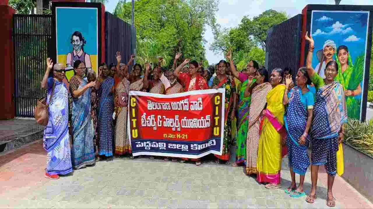 కేంద్ర, రాష్ట్ర ప్రభుత్వాల ఆధ్వర్యంలో నడిచే అంగన్వాడీ కేంద్రాల్లో పని చేసే టీచర్లు, హెల్పర్లకు పదవీ విరమణ లేదు. స్వచ్ఛందంగా పదవీ విరమణ చేస్తే తప్ప పోస్టులు ఖాళీ ఏర్పడేవి కావు. ఈ కేంద్రాల్లో 5 ఏళ్లలోపు పిల్లలకు పౌష్టికాహారాన్ని అందిం చడంతోపాటు విద్యాబుద్ధులు నేర్పించాల్సి ఉంటుంది. బాలింతలు, గర్భిణీలకు సైతం పౌష్టికాహారాన్ని అందిస్తున్నారు. ఇవేగాకుండా ఇతరత్రా విధులను అంగన్వాడీ టీచర్లకు అప్పగిస్తారు. వీరి పదవీ విరమణకు సంబంధించి ఆయా రాష్ట్ర ప్రభుత్వాలు పదవీ విర మణ వయస్సును నిర్ధారించాయి. ఆంధ్రప్రదేశ్లో 60 ఏళ్లు, కర్ణాట కలో 58 ఏళ్లు, తమిళనాడులో 60 ఏళ్లు నిండిన తర్వాత పదవీ విరమణను అమలు చేస్తున్నాయి. తెలంగాణ రాష్ట్రంలో కూడా 65 ఏళ్లకు పదవీ విరమణ చేయాలని 2023 సెప్టెంబర్ 5వ తేదీన బీఆర్ఎస్ ప్రభుత్వం జీవో 10 జారీ చేసింది. అప్పటి వరకు పదవీ విరమణ అనంతరం టీచర్లకు 60 వేలు, హెల్పర్లకు 30 వేల రూపాయల బెనిఫిట్స్ కింద ఇచ్చే వాళ్లు. బీఆర్ఎస్ ప్రభుత్వం టీచర్లకు లక్ష, హెల్పర్లకు 50 పెంచుతూ జీవోలో పేర్కొంది.