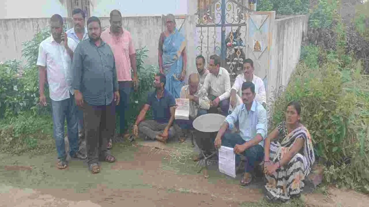 భూమి విక్రయం పేరుతోపాటు అక్కర నిమిత్తం తీసుకున్న లక్షలాది రూపాయల డబ్బులు తిరిగి ఇప్పించాలని రొంపికుంట గ్రామానికి చెందిన గుమ్మడి హైమవతి శ్రీనివాస్ ఇంటి ఎదుట పలువురు బాధితులు శుక్రవారం నిరసన తెలిపారు.