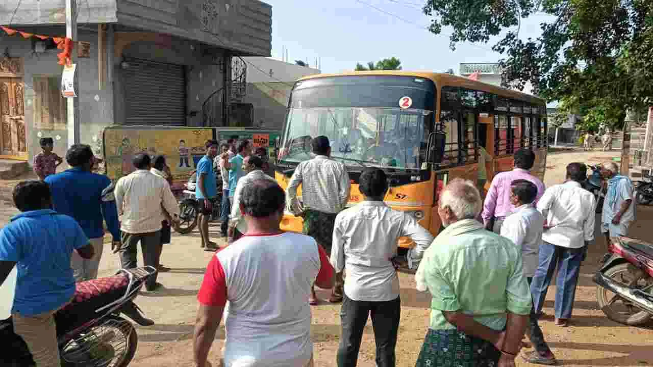 ప్రైవేట్ స్కూల్ బస్సును అడ్డుకున్న గ్రామస్థులు