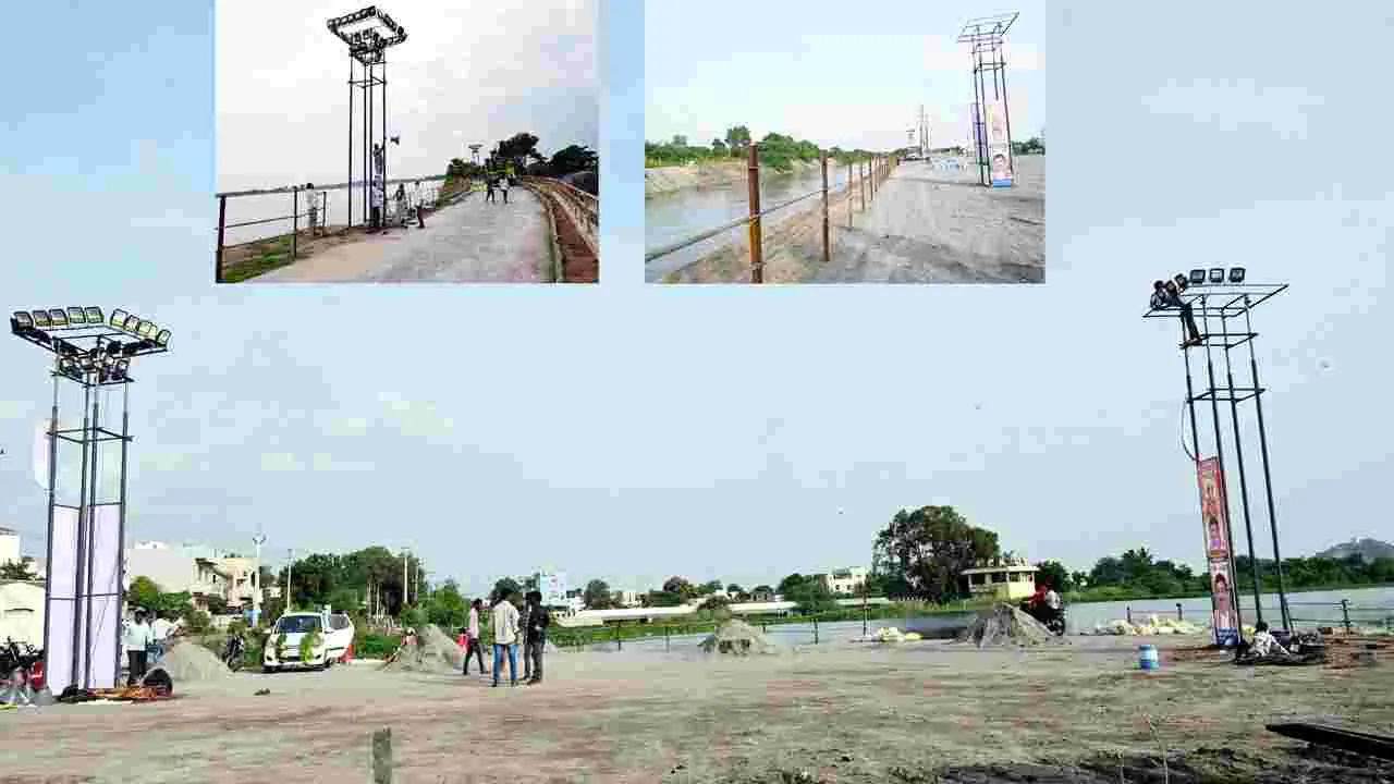 టవర్సర్కిల్ వద్ద పూజలకు ఏర్పాట్లు..
