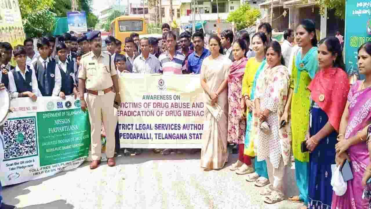 పెద్దపల్లిటౌన్, అక్టోబరు 9 (ఆంఽధ్రజ్యోతి): దేశ భవిష్యత్తుకు ప్రమాదకరంగా మారుతున్న మాదక ద్రవ్యాల మహమ్మారిని తరిమికొట్టేందుకు ప్రతి ఒక్కరూ సంఘటితంగా పోరాడాలని జిల్లా న్యాయ సేవాధికార సంస్థ కార్యదర్శి స్వప్న రాణి పిలుపునిచ్చారు. సమాజ శ్రేయస్సు, యువత భవిష్యత్తు కోసం ప్రతి పౌరుడు తమ వంతు కృషిచేసి డ్రగ్స్ నివారణకు పాటుపడాలని పేర్కొన్నారు. నశా ముక్త్ భారత్ అభియాన్ కార్యక్రమంలో భాగంగా గురువారం జిల్లా కేంద్రంలోని అయ్యప్ప టెంపుల్ చౌరస్తా వద్ద మానవహారం నిర్వహించారు. న్యాయమూర్తి స్వప్న రాణితో పాటు పెద్ద సంఖ్యలో విద్యార్థులు, మహిళలు, వివిధ శాఖల అధికారులు పాల్గొన్నారు. న్యాయమూర్తి స్వప్న రాణి మాట్లాడుతూ నేటి యువత కేవలం సరదాగా మొదలుపెట్టి, చివరికి తెలియకుండానే మత్తుకు అలవాటుపడి తమ విలువైన జీవితాలను నాశనం చేసుకుంటున్నారని ఆవేదన వ్యక్తం చేశారు. మొదట్లో అలవాటుగా మొదలైన ఈ వ్యసనం రానురాను ప్రాణాలను హరించే స్థాయికి చేరుతుందన్నారు.