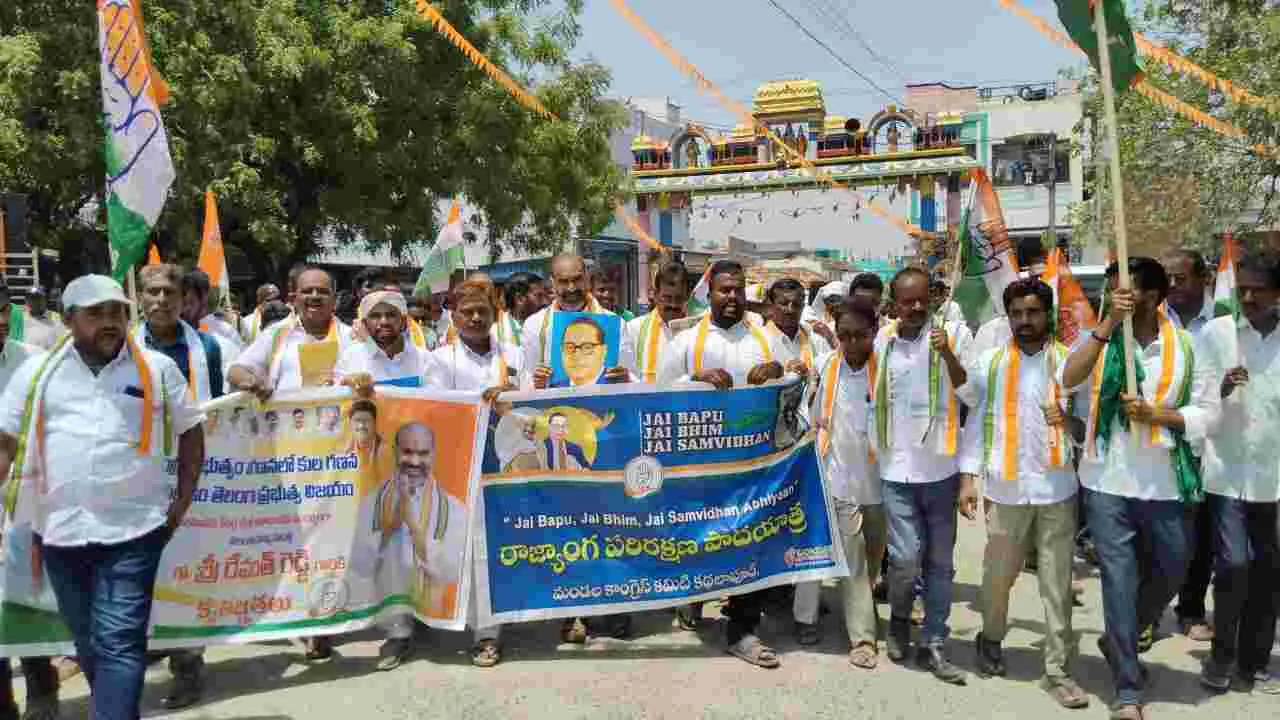 కథలాపూర్, మే 2 (ఆంధ్రజ్యోతి): కేంద్రంలోని బీజేపీ ప్రభుత్వం రాజ్యాంగాన్ని అపహాస్యం చేసేలా వ్యవహరిస్తున్న నేపథ్యంలో ప్రపంచంలోనే అతిపెద్ద రాజ్యాంగాన్ని కాపాడుకోడానికి ప్రతీఒక్కరూ నడుం బిగించాల్సిన అవసరం ఉందని వేములవాడ ఎమ్మెల్యే, ప్రభుత్వ విప్ ఆది శ్రీనివాస్ పిలుపునిచ్చారు. మండల కేంద్రంలో శుక్రవారం నిర్వహించిన జైభీం, .జైబాపు, జైసంవిధాన్ కార్యక్రమానికి ముఖ్యఅతిథిగా హాజరై మాట్లాడారు. అహింసా విధానంతో స్వాతంత్ర్యాన్ని సాధించిన మహాత్మాగాంధీ, రాజ్యాంగరచన కోసం అహర్నిషలు కష్టపడ్డ డాక్టర్ బాబా సాహెబ్ అంబేద్కర్ను అనుసరిస్తూ ముందుకు వెళ్లాలన్నారు. మహానీయుల త్యాగ ఫలాలను బడుగు, బలహీనవర్గాలు అనుభవించకుండా కేంద్రం మనువాద పద్ధతులను అవలంభిస్తోందని ఆరోపించారు. రాష్ట్రంలోని రేవంత్రెడ్డి నేతృత్వంలోని కాంగ్రెస్ సర్కారు దేశానికే రోల్ మోడల్గా ఉండే విధంగా కుల గణన చేపట్టిందని గుర్తుచేశారు. దీంతో సామాజిక, ఆర్థిక, రాజకీయ, విద్యా, ఉద్యోగాల్లో సమన్యాయం జరగడానికి అవకాశం చిక్కిందని చెప్పారు. రాష్ట్రం చేపట్టిన కులగణన వల్ల చేకూరే ప్రయోజనాలను కేంద్రం గుర్తించి కొద్దిరోజుల్లో జరగబోయే జన గణనతో పాటు కులగణన చేపట్టాలని నిర్ణయించిందని పేర్కొన్నారు. పేదల సంక్షేమం కోసం ప్రభుత్వం సన్న బియ్యం పంపిణీ, ఆర్టీసీ బస్సుల్లో ఆడబిడ్డలకు ఉచిత ప్రయాణం, రణమాఫీ, 200 యూనిట్ల ఉచిత విద్యుత్, రు. 500లకే సిలిండర్ వంటి పథకాలను అమలు చేసి చూపించామన్నారు. ప్రధాన వీధుల వెంట అంబేద్కర్, మహాత్మాగాంఽధీ చిత్రపటాలను ప్రదర్శిస్తూ పాదయాత్ర కొనసాగించారు. కార్యక్రమంలో ఏఎంసీ చైర్మన్ పూండ్ర నారాయణరెడ్డి, వైస్ చైర్పర్సన్ పులి శిరీషహరిప్రసాద్, పీసీసీ కార్యవర్గ సభ్యుడు తొట్ల అంజయ్య, కాంగ్రెస్ మండల అధ్యక్షుడు కాయతి నాగరాజు, బ్లాక్ కాంగ్రెస్ అధ్యక్షుడు అజీం, జిల్లా కార్యదర్శి గోపిడి ధనుంజయ్రెడ్డి, రాష్ట్ర ఫిషరీస్ విభాగం కార్యదర్శి కల్లెడ గంగాధర్, శేఖర్, రవి, పిడుగు తిరుపతిరెడ్డి, వాకిటి రాజరెడ్డి, గడ్డం స్వామిరెడ్డి తదితరులు పాల్గొన్నారు.