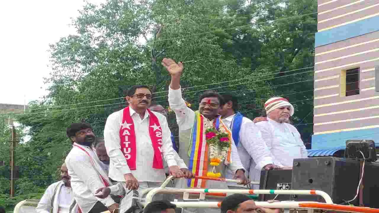 గోదావరిఖని, జూలై 6(ఆంధ్రజ్యోతి): ఇసుక అక్రమ రవాణాకు చెక్ పెట్టి ప్రభుత్వ ఆదాయం పెంచడమే లక్ష్యంగా పెట్టుకున్నామని కార్మిక, మైనింగ్శాఖ మంత్రి గడ్డం వివేక్ చెప్పారు. ఆదివారం రాత్రి గోదావరిఖని దుర్గానగర్లో ఒక ప్రైవేట్ ఫంక్షన్హాల్లో మాల మహానాడు, కార్మిక సంఘాల ఆధ్వర్యంలో నిర్వహించిన ఆత్మీయ సమ్మేళనంలో మంత్రి వివేక్ పాల్గొన్నారు. ఆయన మాట్లాడుతూ ఇసుక అక్రమ రావాణా చేసేవారిని వదిలిపెట్టేది లేదని, రాష్ట్ర ప్రభుత్వానికి రూ.3వేల కోట్ల ఆదాయం రావాల్సి ఉండగా కేవలం రూ.670కోట్ల ఆదాయం వస్తుందని, ప్రభుత్వ ఆదాయానికి గడి కొడితే సహించేది లేదన్నారు. దీనిపై ముఖ్యమంత్రి కూడా సీరియస్గా ఉన్నారని, ఇసుక రవాణా ద్వారా ప్రభుత్వానికి ఆదాయం పెంచే విధంగా చర్యలు చేపట్టాలని ముఖ్యమంత్రి సూచించినట్టు వివేక్ చెప్పారు. సింగరేణి కార్మికుల సొంతింటి కలను నెరవేర్చడం, సంస్థలోపని చేస్తున్న కాంట్రాక్టు కార్మికులకు సమాన పనికి సమాన వేతనం చెల్లించడానికి చర్యలు తీసుకుంటున్నట్టు, దీనిపై సింగరేణి సీఎండీ బలరాంనాయక్తో మాట్లాడినట్టు చెప్పారు. సింగరణి సంస్థను కాపాడుకోవడం, డీఎంఎఫ్టీ, సీఎస్ఆర్ నిధులు సింగరేణి ప్రభావిత గ్రామాల్లో ఉపయోగించడానికి కృషి చేస్తున్నట్టు తెలిపారు. తాను ఎప్పుడూ పదవుల కోసం ఆశపడలేదని, తెలంగాణ ఉద్యమ సమయంలో తనను మాజీ ముఖ్యమంత్రి కిరణ్ కుమార్రెడ్డి ఇబ్బందులకు గురి చేసినప్పటికీ ఉద్యమానికి నాయకత్వం వహించి ముందుకు నడిచానన్నారు. ఎంపీ గడ్డం వంశీకృష్ణ సింగరేణి కార్మికులకు పెన్షన్ పెంచాలని పార్లమెంట్లో గళం విప్పారని, దీంతో రూ.144కోట్లు కేటాయించారని చెప్పారు. గుమ్మడి కుమారస్వామి అధ్యక్షతన జరిగిన సమావేశంలో నాయకులు బీ వెంకట్రావ్, బాబర్ సలీంపాషా, పీ మల్లికార్జున్, కామ విజయ్, తొగరి తిరుపతి, బోయిని మల్లేష్, దుబాసి మల్లేష్, బందారపు మల్లికార్జున్, పుట్ట రమేష్, వంగ లక్ష్మిపతిగౌడ్, పెంచాల తిరుపతి, ఏఐటీయూసీ నాయకులు వాసిరెడ్డి సీతారామయ్య, మడ్డి ఎల్లయ్య, వైవీరావు, రంగు తిరుపతి పాల్గొన్నారు. కార్మికశాఖ మంత్రిగా గోదావరిఖనికి వచ్చిన గడ్డం వివేక్కు మాల మహానాడు, కార్మిక సంఘాల నాయకులు ఘన స్వాగతం పలికారు. మున్సిపల్ టీ జంక్షన్ వద్ద ఉన్న అంబేద్కర్ విగ్రహానికి పూలమాలలు వేసి నివాళులర్పించారు. పీ మల్లికార్జున్, కామ విజయ్ ఆధ్వర్యంలో భారీ గజ మాలను వివేక్ వేశారు. మహిళలు మంగళహారతులతో, ఒగ్గు డోలు కళాకారులతో ర్యాలీ నిర్వహించారు.
