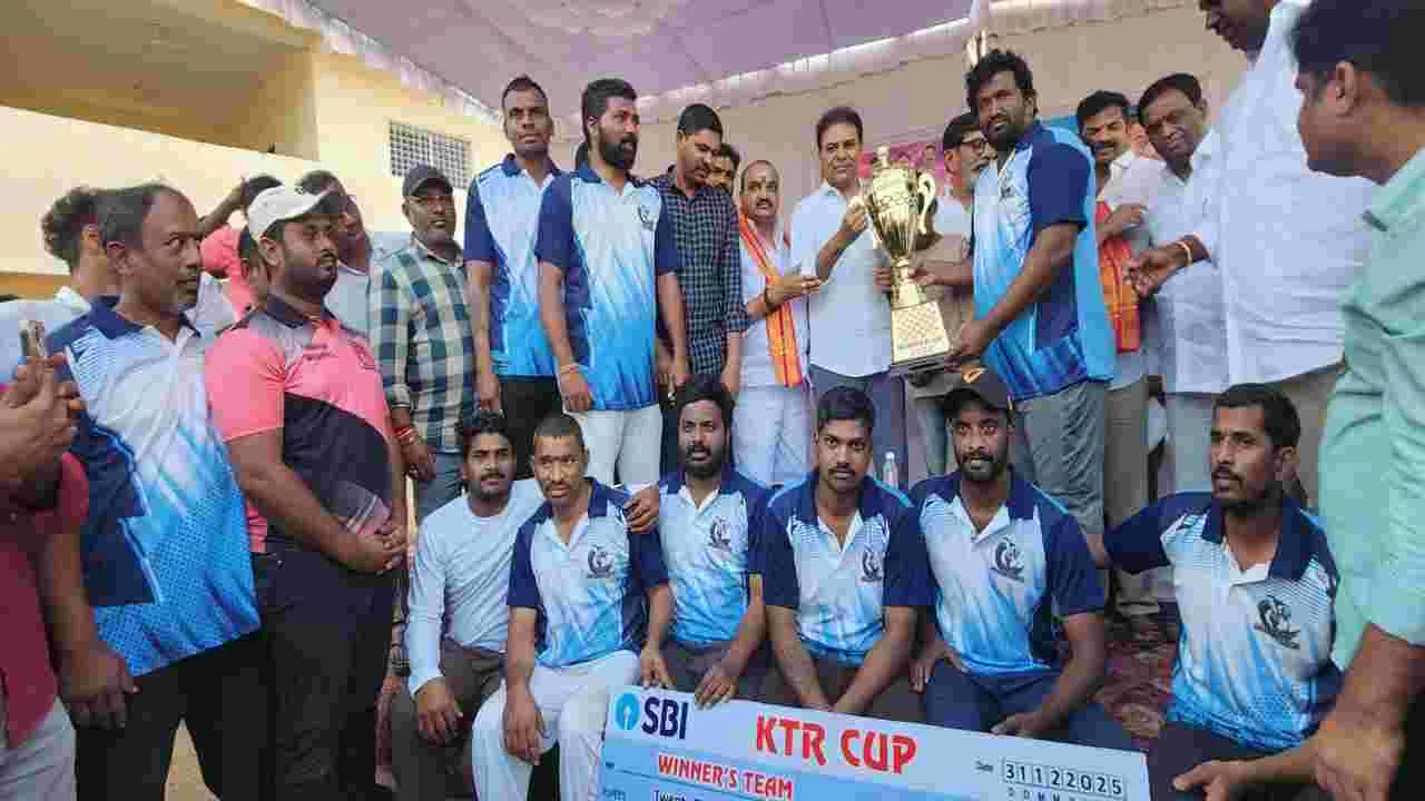 సిరిసిల్ల, డిసెంబరు 31 ఆంధ్రజ్యోతి): గెలుపోటములను సమానంగా స్వీకరించాలని బీఆర్ఎస్ రాష్ట్ర వర్కింగ్ ప్రెసిడెంట్ కే తారక రామారావు అన్నారు. బుధవారం సిరిసిల్ల ప్రభుత్వ జూని యర్ కళాశాల మైదానంలో మదీనా యూత్ వెల్ఫేర్ సొసైటీ ఆధ్వ ర్యంలో నిర్వహించిన కేటీఆర్ కప్ టోర్నమెంట్ ఫైనల్ ఆటను తిలకించి విజేతలకు బహుమతులను అందించారు. ఫైనల్ పోటీలో అన్నారం క్రికెట్ టీం విన్నర్గా నిలిచింది. కెప్టెన్ గుర్రం శ్రీనివాస్, రన్నర్గా మహమ్మద్ సత్తార్ టీం కెప్టెన్ మహమ్మద్ మన్సూర్లు ట్రోపీలను కేటీఆర్ చేతుల మీదుగా అందుకున్నారు. విన్నర్ టీంకు రూ.20వేలు, రన్నర్ టీంకు రూ10వేల నగదుతో పాటు ట్రోపీలను అందజేశారు. ఫైనల్ మ్యాచ్ ముగిసిన తర్వాత మాజీ మంత్రి కేటీఆర్ బ్యాటింగ్ చేయగా టెస్కాబ్ మాజీ చైర్మన్ కొండూరు రవీందర్రావు బౌలింగ్ చేశారు. ఈ కార్యక్రమంలో బీఆర్ఎస్ జిల్లా అధ్యక్షుడు తోట ఆగయ్య, బీఆర్ఎస్ పట్టణ అధ్య క్షుడు జిందం చక్రపాణి, మైనార్టీ సెల్ అధ్యక్షుడు సత్తార్, మదీనా యూత్ వెల్ఫేర్ సొసైటీ అధ్యక్షుడు సయ్యద్ ఉస్మాన్, మున్సిపల్ వైస్ చైర్మన్ మంచె శ్రీనివాస్, బీఆర్ఎస్ సీనియ ర్ నాయకులు బొల్లి రామ్మోహన్, మల్లారెడ్డి, అన్నారం శ్రీనివాస్ తదితరులు పాల్గొన్నారు.