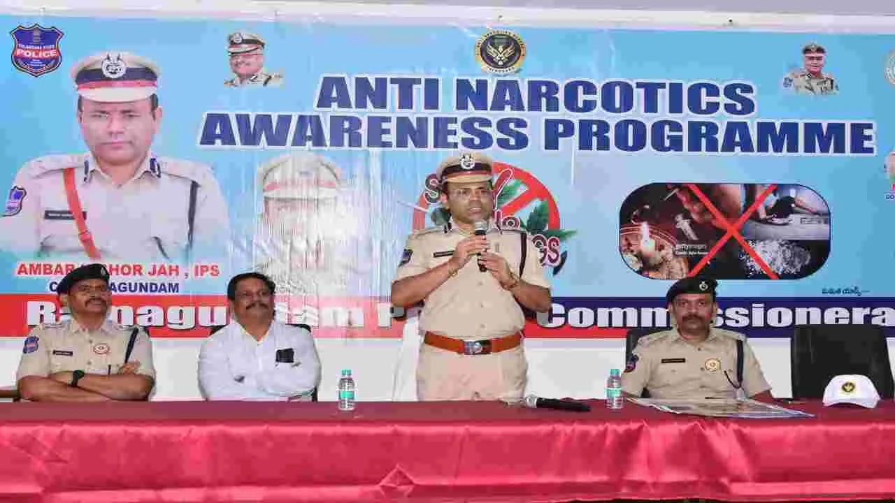 రామగిరి, జూన్ 26(ఆఽంధ్రజ్యోతి): యువత మత్తు పదార్థాలకు బానిసలుగా మారవద్దని రామగుండం పోలీస్ కమిషనర్ అంబర్ కిషోర్ ఝా సూచించారు. అం తర్జాతీయ మాదక ద్రవ్యాల దుర్వినియోగం, అక్రమ రవా ణా, మత్తు పదార్థాల నిర్మూలన వారోత్సవాలను పురస్క రించుకొని జేఎన్టీయూ ఇంజనీరింగ్ కళాశాలలో విద్యా ర్థులకు గురువారం అవగాహన కార్యక్రమా న్ని నిర్వహించారు. సీపీ మాట్లాడుతూ యు వత మత్తు పదార్థాల వినియోగం ద్వారా భవిష్యత్ ప్రశ్నార్థంగా మారే పరిస్థితి నెలకొం దన్నారు.