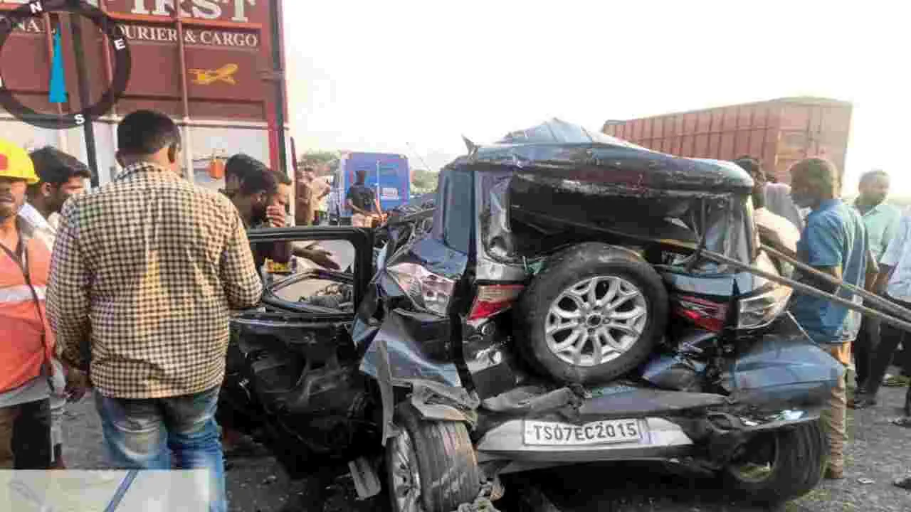 మూసాపేట, ఏప్రిల్ 30 (ఆంధ్రజ్యోతి) : స్కూటీని తప్పించబోయి ఓ కారు ముందు వెళ్తున్న డీసీఎంను ఢీకొన్నది. ఆ కారును వెనుక నుంచి వస్తున్న లారీ ఢీకొన్నది. ప్రమాదంలో ఓ మహిళ దుర్మరణం చెందింది. మరో నలుగురు తీవ్రంగా గాయపడ్డారు. మహబూబ్నగర్ జిల్లా, మూసాపేట మండలంలో బుధవారం ఉదయం ఈ సంఘటన జరిగింది. అడ్డాకుల ఎస్ఐ ఎం.శ్రీనివాస్ కథనం ప్రకారం.. వనపర్తి జిల్లా కొత్తకోట మండలం, సంకిరెడ్డిపల్లి గ్రామానికి చెందిన ఎల్లారెడ్డి కుటుంబసభ్యులతో కలిసి కారులో హైదరాబాద్కు బయలు దేరారు. అడ్డాకుల మండలం కందూరు స్టేజీ వద్దనున్న వంతెనపై ముందు వెళ్తున్న డీసీఎంకు ఓ స్కూటీ హఠాత్తుగా అడ్డురావడంతో డ్రైవర్ సడన్ బ్రేక్ వేశాడు. దీంతో దాని వెనుక వస్తున్న కారు డీసీఎంను ఢీకొన్నది. అదే సమయంలో వెనుక నుంచి వచ్చిన లారీ ఆ కారును ఢీకొనడంతో నుజ్జునుజ్జయ్యింది. కారులో ప్రయాణిస్తున్న శోభారాణి (50) తీవ్రంగా గాయపడి అక్కడికక్కడే మృతి చెందింది. అదే కారులో ఉన్న ఎల్లారెడ్డి, విమల, డ్రైవర్ రవీందర్తో పాటు స్కూటీపై వస్తున్న కొమిరెడ్డిపల్లికి చెందిన రఘుపతిరెడ్డి తీవ్రంగా గాయపడ్డారు. సమాచారం అందుకున్న వెంటనే పోలీసులు సంఘటనా స్థలానికి చేరుకొని సహాయక చర్యలు చేపట్టారు. పూర్తిగా దెబ్బతిన్న కారులో నుంచి క్షతగాత్రులను వెలికి తీసి అంబులెన్సులో జిల్లా ఆసుపత్రికి తరలించారు. రఘుపతిరెడ్డి కందూరు సాయిబాబా గుడికి వెళ్లి దర్శనం చేసుకొని తిరిగి స్వగ్రామానికి వెళ్తుండగా ఈ ప్రమాదం జరిగింది. ప్రమాదం జరిగినప్పుడు వాహనాలు రహదారికి అడ్డంగా పడటంతో కొద్దిసేపు రాకపోకలకు ఆటంకం కలిగింది. సంఘటనపై కేసు నమోదు చేసుకొని, విచారణ చేపట్టినట్లు ఎస్ఐ తెలిపారు.