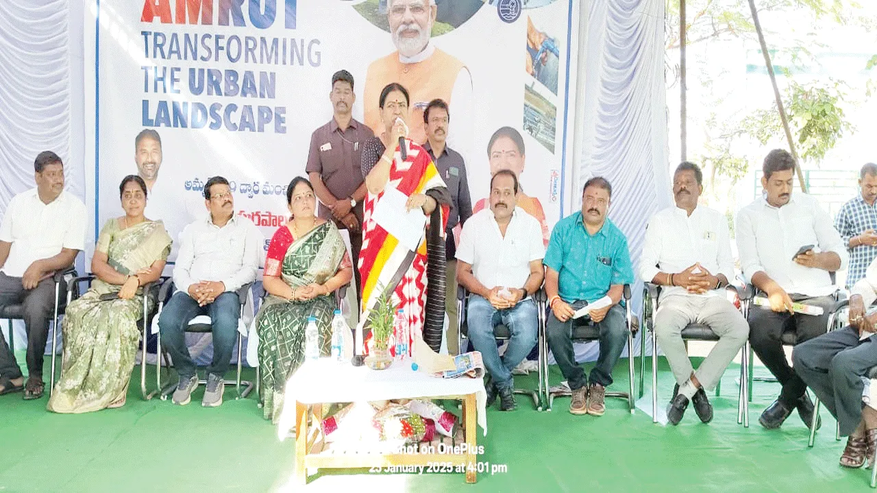 ఆత్మకూరు, జనవరి 23 (ఆంధ్రజ్యోతి) : ప్రతీ ఇంటికి స్వచ్ఛమైన తాగునీరు అందించడమే కేంద్ర ప్రభుత్వ లక్ష్య మని మహబూబ్నగర్ ఎంపీ డీకే అరుణ అన్నారు. వన పర్తి జిల్లా ఆత్మకూరు పట్టణంలో ప్రధానమంత్రి అమృత్ యోజన పథకం 2.0 ద్వారా 12 లక్షల లీటర్ల స్వచ్ఛమైన నీటిని అందించే పథకానికి శంకుస్థాపన చేశా రు. ఈ సందర్భంగా ఎంపీ మాట్లాడుతూ... ప్రధాని నరేంద్రమోదీ పట్టణాలు, పల్లెలు సురక్షితంగా ఉంటేనే దేశ అభివృద్ధి సాధ్యమవుతుందని గ్రహించి ప్రతి పట్టణంలో శుద్ధజలం అందించే కార్యక్రమానికి శ్రీకారం చుట్టారని తెలిపారు. ఈ పథకం ద్వారా పట్టణంలోని పది వార్డులలో పది వాట ర్ ట్యాంకులను నిర్మించి నిరంతరం శుద్ధ జ లం అందివ్వనున్నామని తెలిపారు. రాష్ట్ర ప్రభు త్వం ప్రకటించే ప్రతి పథకంలో కేంద్ర ప్రభు త్వం వాటా ఉందని గుర్తు చేశారు.