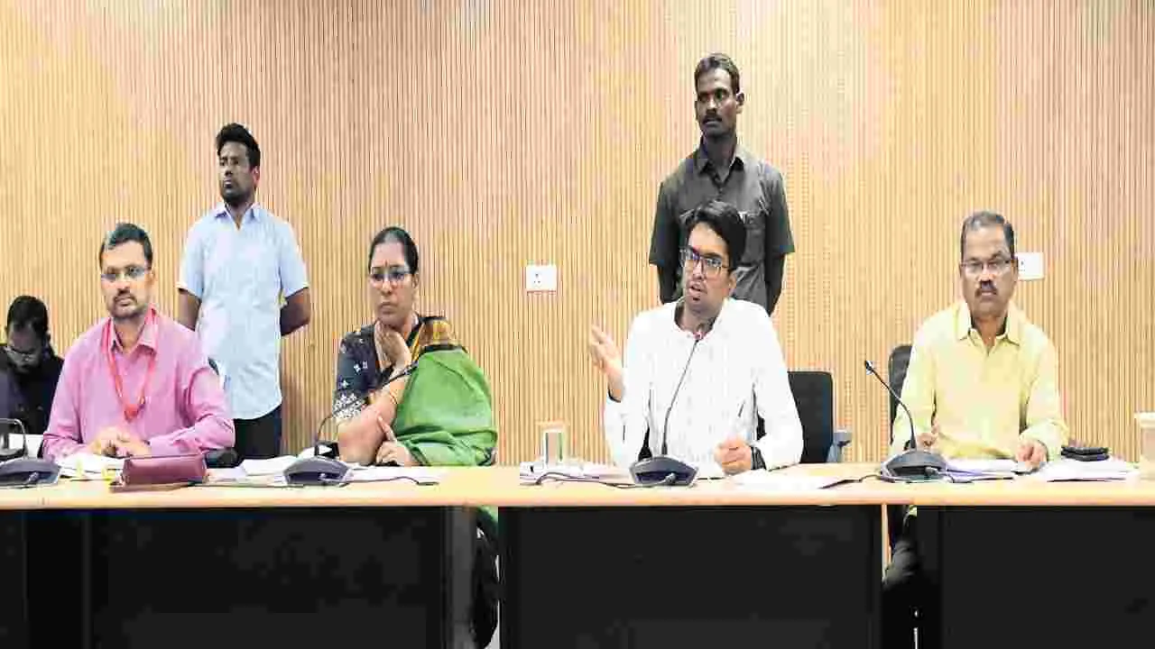 వనపర్తి రాజీవ్చౌరస్తా, మే 8 (ఆంధ్రజ్యోతి):మొదటి విడతలో మంజూ రైన ఇందిరమ్మ ఇళ్ల నిర్మాణం త్వరగా పూర్తయ్యేలా చర్యలు తీసుకోవాలని వనప ర్తి కలెక్టర్ ఆదర్శ్ సురభి ఎంపీడీవోలను ఆదేశించారు. గురువారం మధ్యాహ్నం కలెక్టరేట్లో మండల ప్రత్యేక అధికారులు, ఎంపీడీవోలు, ఎంపీవోలు, మునిసిపల్ కమిషనర్లతో ఇందిరమ్మ ఇళ్లు, రాజీవ్ యువవికాసం, ఉపాధి హామీ పథకం,సీజనల్ వ్యాధులపై సమీక్ష సమావేశం నిర్వహించారు. మొదటి విడతలో ప్రతీ మండలం నుంచి ఒక్కో గ్రామాన్ని పైలట్ ప్రాజెక్టుగా తీసుకుని 1,300 మందికి ఇందిరమ్మ ఇళ్లు మంజూరు చేశామన్నారు. అందులో ఇప్పటి వరకు గ్రౌండింగ్ చేసిన వివరాలు, పెండింగ్లో ఉండ టానికి కారణాలపై సమీక్ష నిర్వహించారు. రాజీవ్ యువవికాసం పథకా నికి వచ్చిన దరఖాస్తులను క్షుణ్ణంగా పరిశీలించి జాబితాను బ్యాంకులకు అందజేయాలన్నారు. ఉపాధి హామీ పథకంలో 2025-26 ఆర్థిక సంవ త్సరంలో కూలీలకు 15 లక్షల పని దినాలు కల్పించాలని నిర్దేశించడం జరిగిందన్నారు. సీజనల్ వ్యాధుల నివారణకు ముందస్తు ప్రణాళికలు సిద్ధం చేసుకోవాలని సూచించారు. కార్యక్రమంలో అదనపు కలెక్టర్ యాదయ్య, డీఆర్డీవో ఉమాదేవి, లీడ్ బ్యాంకు మేనేజర్ శివకుమార్, మండల ప్రత్యేక అధికారులు పాల్గొన్నారు.