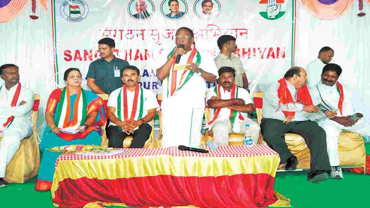 కొల్లాపూర్, అక్టోబరు 13 (ఆంధ్రజ్యోతి) : కాం గ్రెస్ పార్టీ కార్యకర్తల అభీష్టం మేరకే డీసీసీ అధ్య క్షుల నియామకం ఉంటుందని పాండిచ్చేరి మాజీ సీఎం నారాయణస్వామి స్పష్టం చేశారు. సోమవా రం సాయంత్రం నాగర్కర్నూల్ జిల్లా కొల్లాపూర్ పట్టణంలోని ఓ ఫంక్షన్ హాల్లో డీసీసీ అధ్యక్షు డు అచ్చంపేట ఎమ్మెల్యే వంశీకృష్ణ అధ్యక్షతన జరిగిన ‘సంఘటన్ సృజన్ అభియాన్’ కార్యక్రమా నికి మంత్రి జూపల్లి కృష్ణారావుతో కలిసి ఆయన హాజరయ్యారు. ఈసందర్భంగా నారాయణస్వామి మాట్లాడుతూ.. జోడోయాత్రలో భాగంగా ఇక్కడి కార్యకర్తల పోరాట పఠిమ చూసి రాహుల్గాంధీ ఆశ్చర్యపోయారని గుర్తు చేశారు. అవినీతి కుటుం బ పాలన చేస్తున్న బీఆర్ఎస్ ప్రభుత్వాన్ని కాం గ్రెస్ పార్టీ కార్యకర్తలు గద్దెదించారని అన్నారు. పార్టీ కోసం కష్టపడి పనిచేసే నాయకులకు పద వులు దక్కుతాయని, క్షేత్రస్థాయిలో కాంగ్రెస్ పార్టీ కార్యకర్తల అభిప్రాయ సేకరణ కోసమే తాను కొల్లాపూర్ నియోజకవర్గానికి వచ్చినట్లు వెల్లడిం చారు. పర్యాటక శాఖ మంత్రి జూపల్లి కృష్ణారావు మాట్లాడుతూ... బీసీలకు పెద్దపీట వేసే ఏకైక పార్టీ కాంగ్రెస్ పార్టీ అన్నారు. చట్టప్రకారమే బీసీ రిజర్వేషన్లతో కాంగ్రెస్ పార్టీ స్థానిక సంస్థలు ఎన్ని కలు నిర్వహిస్తుందని ధీమా వ్యక్తం చేశారు. రాష్ట్రాల సమాఖ్యతో కేంద్రం బీసీలకు రిజర్వేషన్లు కల్పించాలని ఆయన డిమాండ్ చేశారు. బీఆర్ ఎస్ చేసిన అప్పులకు వడ్డీ కట్టే బదులు రాష్ట్రంలో ఉన్న ఒక్కొక్క గ్రామ పంచాయతీకి రూ.30 కోట్లు కేటాయించవచ్చని అన్నారు. అనంతరం ఎమ్మెల్సీ అమీర్ అలీఖాన్, పీసీసీ రాష్ట్ర కార్యదర్శి సంధ్యా రెడ్డి, డీసీసీ అధ్యక్షుడు వంశీకృష్ణ, నాయకులు, కార్యకర్తల అభిప్రాయాన్ని సేకరించారు. అనంత రం డీసీసీ అధ్యక్షుడి పదవికోసం డాక్టర్ పగిడాల శ్రీనివాస్ రెడ్డి, షేక్రహీంపాషా దరఖాస్తు చేసు కున్నారు. కార్యక్రమంలో అబ్జర్వర్ శ్రీనివాస్, పీసీ సీ కార్యదర్శి కే వెంకటేష్, వనపర్తి డీసీసీ అధ్య క్షుడు రాజేంద్రప్రసాద్, వనపర్తి జిల్లా గ్రంథాల య సంస్థల చైర్మన్ గోవర్ధన్, పీసీసీ రాష్ట్ర కార్య నిర్వాహక కార్యదర్శి రంగినేని జగదీశ్వరుడు, శ్రీని వాస్రెడ్డి, మాజీ ఎంపీపీ ప్రతాప్గౌడ్, జడ్పీటీసీ మాజీ సభ్యుడు హనుమంత్ నాయక్, మాజీ ప్రజాప్రతినిధులు తదితరులు ఉన్నారు.