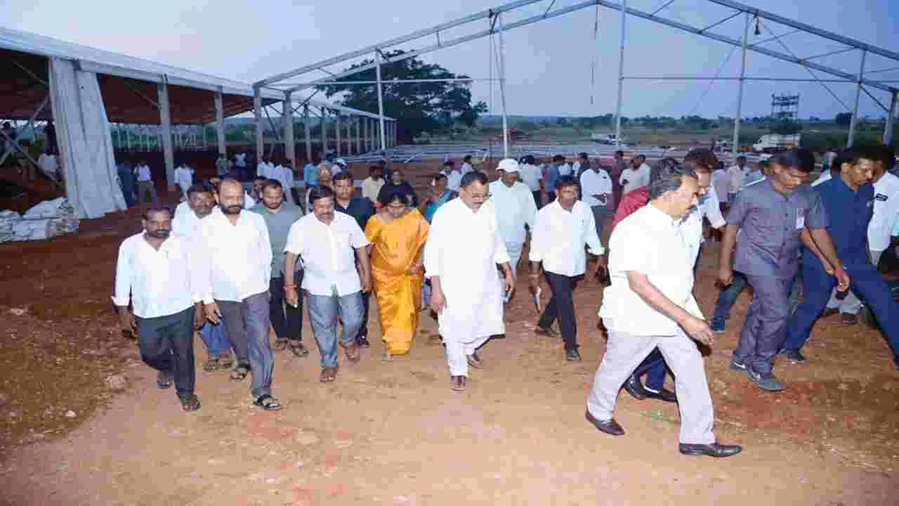 అచ్చంపేట/అమ్రాబాద్, మే 15 (ఆంధ్రజ్యోతి): దేశంలో మొదటిసారి ప్రారంభించే ఇందిర సౌర గిరి జలవికాస పథకం గిరిజనులకు ఎంతో ఉప యోగకరమని ఎక్సైజ్ శాఖ మంత్రి జూపల్లి కృష్ణా రావు అన్నారు. ఈ నెల 18న ముఖ్యమంత్రి నల్ల మల పర్యటనకు వస్తున్నందున అమ్రాబాద్ మం డల పరిధిలోని మాచారంలో ఏర్పాటు చేసిన సభ ను నాగర్ కర్నూల్ ఎంపీ మల్లురవి, ఎమ్మెల్యేలు కశిరెడ్డి నారాయణ రెడ్డి, డాక్టర్ వంశీకృష్ణ, కలెక్టర్ బదావత్ సంతోష్లు పరిశీలించారు. ఈ సందర్భం గా మంత్రి మాట్లాడుతూ గిరిజనుల సంక్షేమం కోసం ప్రారంభించ నున్న ఇందిర సౌర గిరి జలవికాస పథకానికి సంబంధించి సభా వేదిక తదితర పనులను అధికారులు ఎంతో బాధ్యతాయుతంగా ని ర్వర్తిస్తున్నారు. 6లక్షల ఎకరాల గిరిజనులకు సంబంధించిన భూ ములు ఈ పథకానికి ఎంపిక కావడం వల్ల 2.10లక్షల మంది గిరి జన రైతులు లబ్ధిపొందుతారన్నారు. సభకు పెద్ద ఎత్తున అభిమా నులు, కార్యకర్తలు పాల్గొని విజయవంతం చేయాలని పిలుపుని చ్చారు. అదనపు కలెక్టర్ దేవసహాయం, జిల్లా అటవీ అధికారి రో హిత్ గోపిడి, డీటీడీవో అధికారి ఫిరంగి, పంచాయతీ అధికారి రాం మోహన్, డీఆర్డీవో పీడీ చిన్న ఓబులేసు, జిల్లా గ్రంథాలయ చైర్మ న్ రాజేందర్, అచ్చంపేట ఆర్డీవో మాధవి, నాయకులుపాల్గొన్నారు.