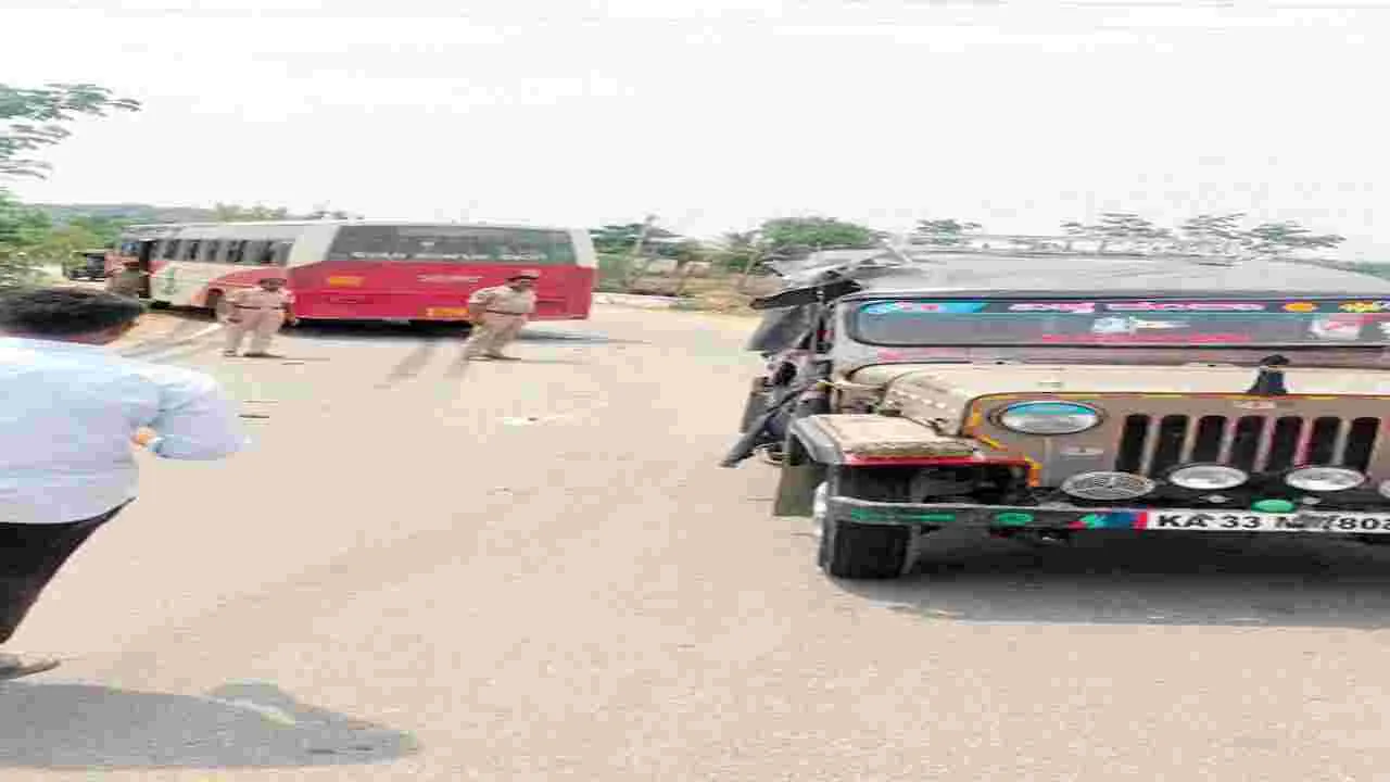 కర్ణాటక ఆర్టీసీ బస్సు, జీపు ఢీకొని..
