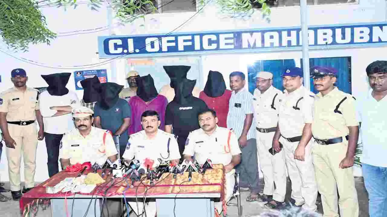 మహబూబ్నగర్, సెప్టెంబరు 18 (ఆంధ్రజ్యోతి): ఒకప్పుడు అతని వ్యవసా య పొలంలో గాసం చేసిన వ్యక్తే దొంగగా మారాడు.. స్నేహితులతో కలిసి తాళం వేసి న షెటర్ తాళాలు పగలకొట్టి బీరువాలో ఉ న్న రూ.4 లక్షలు కాజేశారు.. వారం రోజుల్లో నే పోలీసులు కేసును ఛేదించిన నిందితు లను కటకటాలకు పంపించారు. ఇందుకు సంబంధించిన వివరాలను గురువారం రూ రల్ పోలీస్స్టేషన్లో డీఎస్పీ వెంకటేశ్వర్లు వెల్లడించారు. కోయిలకొండ మండల కేంద్రానికి చెంది న అబ్దుల్ అజీజ్ చావుష్ బజవి అనే వ్యక్తి కి కోయిలకొండలో కాంప్లెక్స్ ఉంది. ఇందు లో ఉన్న షెటర్లో ఈనెల 11న అర్దరాత్రి దొంగతనం జరిగింది. బీరువాలో ఉన్న రూ.4 లక్షల నగదు, 1.8 కిలోల గిల్ట్ నగను అపహరించారు. కేసు నమోదు చేసుకుని పోలీసులు దర్యాప్తు చేసిన పోలీసులు గురు వారం ఏడుగురు నిందితులను అరెస్ట్ చేశా రు. ఇదిలా ఉండగా, కోయిలకొండ మండ లం వీరన్నపల్లికి చెందిన వడెన్న ఇదే గ్రా మంలో ఫిర్యాదుదారుడికి చెందిన వ్యవసా య పొలంలో గాసం చేసేవాడు. కొన్నాళ్ల క్రితం పనిమానేసాడు. తరువాత రియల్ఎ స్టేట్ వ్యాపారం చేయాలని తిరిగే క్రమంలో ఇతనికి బాలానగర్ మండలం ఎక్వాయ్ప ల్లికి చెందిన ముష్ఠి శ్రీనివాసులు, ఏదుల మండలం వాల్యానాయక్ తండాకు చెందిన ఆటోడ్రైవర్ ముడావత్ సురేశ్, అదే తండా కు చెందిన ఆటో డ్రైవర్ సురేశ్, జడ్చర్ల బాదేపల్లికి చెందిన మనిమరి శేఖర్, గద్వా లకు చెందిన ఉప్పల ఉదయ్కుమార్లు ప రిచయమై స్నేహితులుగా మారారు. వీళ్లకు ఆర్థిక సమస్యలు చుట్టుముట్టడంతో జడ్చర్ల లో అందరూ సమావేశమై దొంగతనం చే యాలని నిర్ణయించుకున్నారు. ఏ1 వడెన్న తను ఇదివరకు పనిచేసిన అబ్దుల్ అజీజ్ వద్ద పెద్దమొత్తంలో డబ్బు ఉంటుందని, డ బ్బు షెటర్లోని బీరువాలో దాస్తాడని అక్క డ దొంగతనం చేద్దామని చెప్పాడు. ఇందు కు అందరూ కలిసి ఈనెల 11న కోయిల కొండ చేరుకున్నారు. అర్ధరాత్రి సమయంలో షెటర్ తాళం పగలకొట్టి బీరువాలో ఉన్న రూ.4 లక్షల నగదు, గిల్ట్ నగ లాంగ్చైన్ అ పహరించారు. అయితే గిల్ట్ నగను ఒరిజన ల్ బంగారునగ అని నమ్మించి విక్రయించా లని ప్లాన్ చేశారు. ఇందులో ఏ-2గా ఉన్న ముష్ఠి శ్రీనివాసులు దొంగతనాలలో పాత నేరస్థుడైన తనకు తెలిసిన ఆదిలాబాద్ జి ల్లా నిర్మల్లో కార్పెంటర్ అయిన రాజేంద్ర ప్రసాద్ను సంప్రదించాడు. అతన్ని ఈనెల 17న జడ్చర్లకు పిలిపించి తమ వద్ద ఉన్న గిల్ట్ నగను చూపించారు. దీన్ని ఒరిజనల్ బంగారుగా విక్రయించాలని అతనికి కొంత డబ్బు ఇచ్చారు. అతను ఇందుకు అంగీకరిం చాడు. గురువారం ఉదయం కోయిలకొండ మండలం వీరన్నపల్లి వడెన్న నివాసంలో అప్పటికే ఖర్చు చేసిన రూ.90 వేలు పోనూ మిగతా సొమ్ములో ఏ-1 నుంచి ఏ-6 వరకు సమానంగా ఒక్కొక్కరు రూ.50 వేల చొప్పు న పంచుకున్నారు. మిగిలిన రూ.10 వేలే ఏ7కు ఇచ్చారు. అక్కడినుంచి రెండు కార్ల లో బయలుదేరారు. జడ్చర్ల వద్