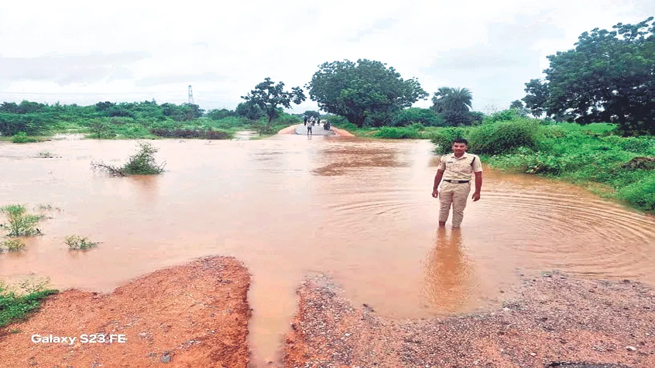 గట్టు, సెప్టెంబరు 26 (ఆంధ్రజ్యోతి): మండల పరిదిలోని వివిద గ్రామాలలో తుఫాను ప్రభావంతో శుక్రవారం తెల్లవారుజాము నుంచి ఎడతెరిపి లేకుండా వర్షం కురిసింది. దీంతో రైతులు, ప్రజలు ఇళ్ల నుంచి బయటకు రాలేక పోయారు. మొత్తంగా ఏడు సెంటీమీటర్ల వర్ష పాతం నమోదయ్యింది. కాలనీలు, రోడ్లు జలమ యం అయ్యాయి. వాగులు, వంకలు పొంగి పా రాయి. దీనివల్ల పలురహదారుల్లో రాకపోకలకు అంతరాయం ఏర్పడింది. రైతులు వ్యవసాయ పనులకు పొలాలకు వెళ్లలేకపోయారు. బోయలగుడ్డం నుంచి లింగాపురం వెళ్లే ప్రధాన రహ దారి మధ్యలో ఉన్న రెండు వాగులు పొంగా యి. నీటి ఉధృతి పెరగడంతో రాకపోకలు నిలి చిపోయాయి. ముందుజాగ్రత్తగా ప్రజలను అ టువైపు వెళ్లకుండా పోలీసులు వాగు వద్ద భద్ర త ఏర్పాటు చేశారు. వాగులో నీటి ఉధృతి తగ్గే వరకు ఇటువైపు రావద్దని పోలీసులు హెచ్చరికలు జారీ చేశారు. ఎడతెరపి లేకుండా వర్షం కురియడంతో చెరువులకు భారీగా నీళ్లు చేరుతున్నాయి. పలు చెరువులు నీటితో నిండి తూ ములు పారుతున్నాయి. ఈ వర్షంతో చేతికి వ చ్చిన పంటలకు నష్టం చేకూరుతుందని రైతు లు వాపోయారు.