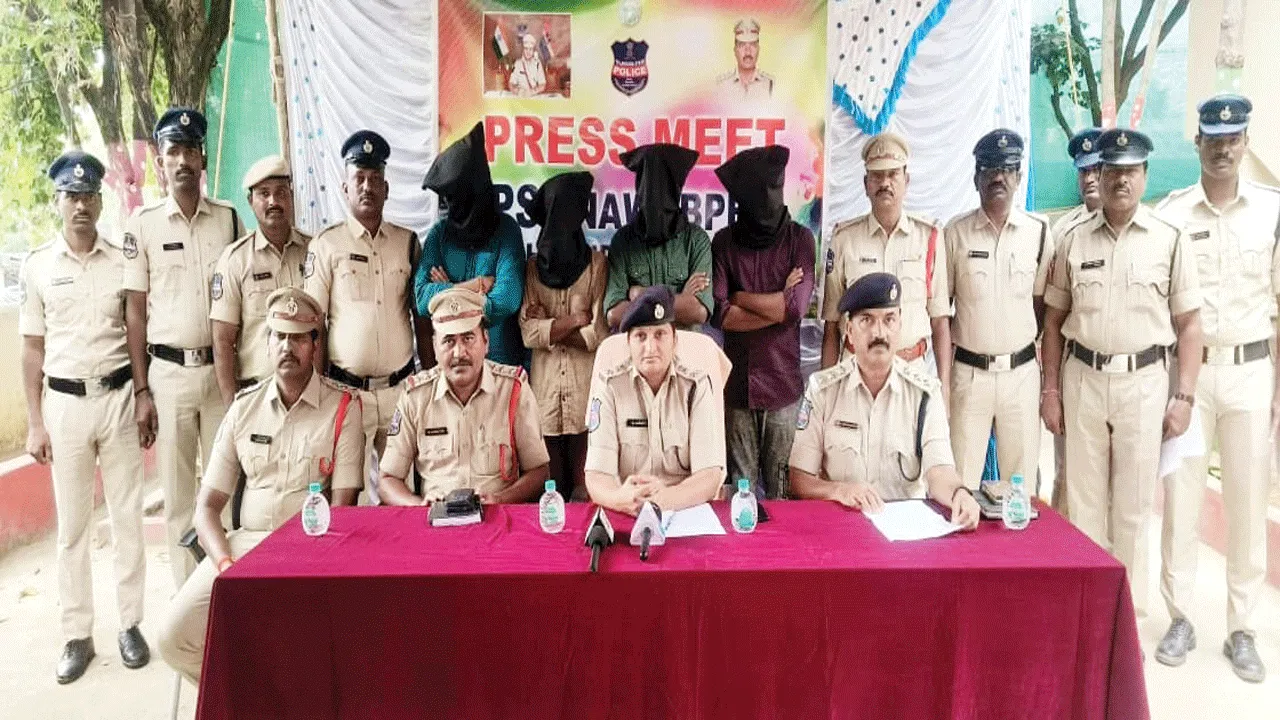 నవాబ్పేట, సెప్టెంబరు 11 (ఆంధ్రజ్యోతి) : క్యాటరింగ్ పనిలో వచ్చే డబ్బుతో సంతృప్తి చెందని వారు పశువుల దొంగలుగా మారారు. పోలీసులకు చిక్కి కటకటాల పాలయ్యారు. సంఘటనకు సంబంధించిన వివరాలను మహబూబ్నగర్ ఎస్పీ జానకి ధరావత్ గురువారం నవాబ్పేట పోలీసు స్టేషన్లో నిర్వహించిన విలేకరుల సమావేశంలో వెవ్లడించారు. ఆమె తెలిపిన వివరాలిలా ఉన్నాయి. మహ బూబ్నగర్ జిల్లా, మహ్మదాబాద్ మండలం జూలపల్లికి చెందిన కుమ్మరి అశోక్, నల్గొండ జిల్లా నూతకల్ మండలం ముకుందాపూర్ గ్రామానికి చెందిన తాటిపల్లి సాయికుమార్, కరీంనగర్ జిల్లా, సైదాపూర్ మండలంలోని బొబ్బకల్ గ్రామానికి చెందిన సర్దస్ అఖీల్, వరంగల్ జిల్లా, జనగాం మండలంలోని పాకాల గ్రామానికి చెందిన బుర్క సాయి క్యాటరింగ్ పని చేస్తూ జీవనం గడిపేవారు. ఈ పనిలో వచ్చే డబ్బు వారికి సంతృప్తిని ఇవ్వకపోవడం, అధికంగా సంపాదించాలన్న ఆలోచనతో పశువుల దొంగతనాలు మొదలు పెట్టారు. యాదగిరి గుట్ట, యాలాల్, సైబరాబాద్, వికారాబాద్, కుల్కచెర్ల, నవాబ్పేట తదితర పాంతాల్లో వ్యాన్లో తిరుగుతూ, 16 పశువులను ఎత్తుకెళ్లారు. ఈ నేపథ్యంలో వికారాబాద్ జిల్లా, చౌడాపూర్ మండలంలోని మరికల్ గ్రామానికి చెందిన అంబటి రాములు తన పశు వులు పోయాయని సెప్టెంబరు 2న నవాబ్పేట పోలీసులకు ఫిర్యాదు చేశాడు. ఎస్ఐ విక్రం కేసు నమోదు చేసుకొని దర్యాప్తు చేపట్టారు. అందులో భాగంగా గురువారం ఉదయం కన్మన్కాల్వ శివారులో తనిఖీలు చేస్తున్న పోలీసులకు పశువులతో వెళ్తున్న వ్యాన్ కనిపించింది. దాని ఆపి, నలుగురు నిందితులను అ దుపులోకి తీసుకొని విచారించారు. తాము 9 పశువులు, 6 లేగ దూడలు, ఒక గేదెను అపహరించినట్లు వారు అంగీకరించారు. వారు దొంగిలించిన పశువుల విలువ 14.50 లక్షలు ఉంటుందని తెలిపారు. దీంతో నలుగురినీ అరెస్టు చేసి రిమాండ్కు తరలించారు. 9 రోజుల్లో కేసును ఛేదించిన పోలీసు సిబ్బందిని అ భినందించి, రివార్డులు అందించారు. సమావే శంలో డీఎస్పీ వెంకటేశ్వర్లు, సీఐ గాంధీనాయక్, నవాబ్పేట ఎస్ఐ విక్రం, సిబ్బంది జనార్దన్, వెంకట్రాములు, సురేశ్బాబు, భాస్కర్, శెట్టినాయక్ పాల్గొన్నారు.