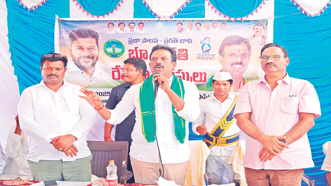 మూసాపేట, మే 8 (ఆంధ్రజ్యోతి) : ప్రభుత్వం ప్రతిష్ఠాత్మకంగా చేపట్టిన భూ భారతితో భూ సమస్యలను శాశ్వత పరిష్కారం దొరుతుందని ఎమ్మెల్యే జీ మధుసూదన్రెడ్డి అన్నారు. మండలంలోని కొమిరెడ్డిపల్లిలో నిర్వహించిన భూ భారతి అవగాహన సదస్సకు అదనపు కలెక్టర్ మోహన్రావుతో కలిసి పాల్గొన్నారు. ఈ సందర్భంగా ఎమ్మెల్యే మాట్లాడుతూ గ్రామాల్లో .రైతులకు అందుబాటులో భూ సమస్యలను పరిష్కరించేందుకు నిర్వహిస్తున్న రెవెన్యూ సదస్సులను రైతులు సద్వినియోగం చేసుకోవాలన్నారు. గత బీఆర్ఎస్ ప్రభుత్వం భూములను దోచుకోవడానికి ధరణి చట్టం తయారు చేసిందన్నారు. కాంగ్రెస్ తీసుకొచ్చిన భూ భారతి చట్టంతో బీఆర్ఎస్ పాలకుల భూ అక్రమాలు బయటపడి .జైలు పాలవుతామనే భయంతో తమ ప్రభుత్వంపై అడ్డగోలుగా విమర్శలు చేయడం సిగ్గు చేటన్నారు. అదే విధంగా రెవెన్యూ సదస్సుల్లో భూ రికార్డుల్లో పేర్లు తప్పులు, విస్తీర్ణం హెచ్చు తగ్గులు, వారసత్వ భూములు, భూ స్వభావం, సర్వే నెంబర్ మిస్సింగ్, పట్టాదారు పాసు పుస్తకాలు లేకపోవడం లాంటి సమస్యలను పరిష్కరిస్తున్నట్లు ఆయన తెలిపారు. అంతకుముందు అడ్డాకుల, మూసాపేట మండలాలకు చెందిన లబ్ధిదారులకు కల్యాణలక్ష్మి, షాదీముబారక్ చెక్కులు పంపిణీ చేశారు. అదే విధంగా రెండు మండలాల రైతులకు స్ర్పింక్లర్లు అందజేశారు. తహసీల్దార్ రాజు, కాంగ్రెస్ మండల శెట్టి చంద్రశేఖర్, తోట శ్రీహరి, మాజీ ఎంపీపీలు బుగ్గి కృష్ణయ్య, నాగార్జున్రెడ్డి, కిసాన్ సెల్ జిల్లా అధ్యక్షుడు నాగిరెడ్డి, డీసీసీ కార్యదర్శి గంగుల విజయమోహన్రెడ్డి, నాయకులు సాయిరెడ్డి, నిరంజన్, సంతోషి, బాలరాజు, లక్ష్మికాంత్రెడ్డి, లక్ష్మినారాయణ, బుచ్చన్నగౌడ్, రాములు పాల్గొన్నారు.