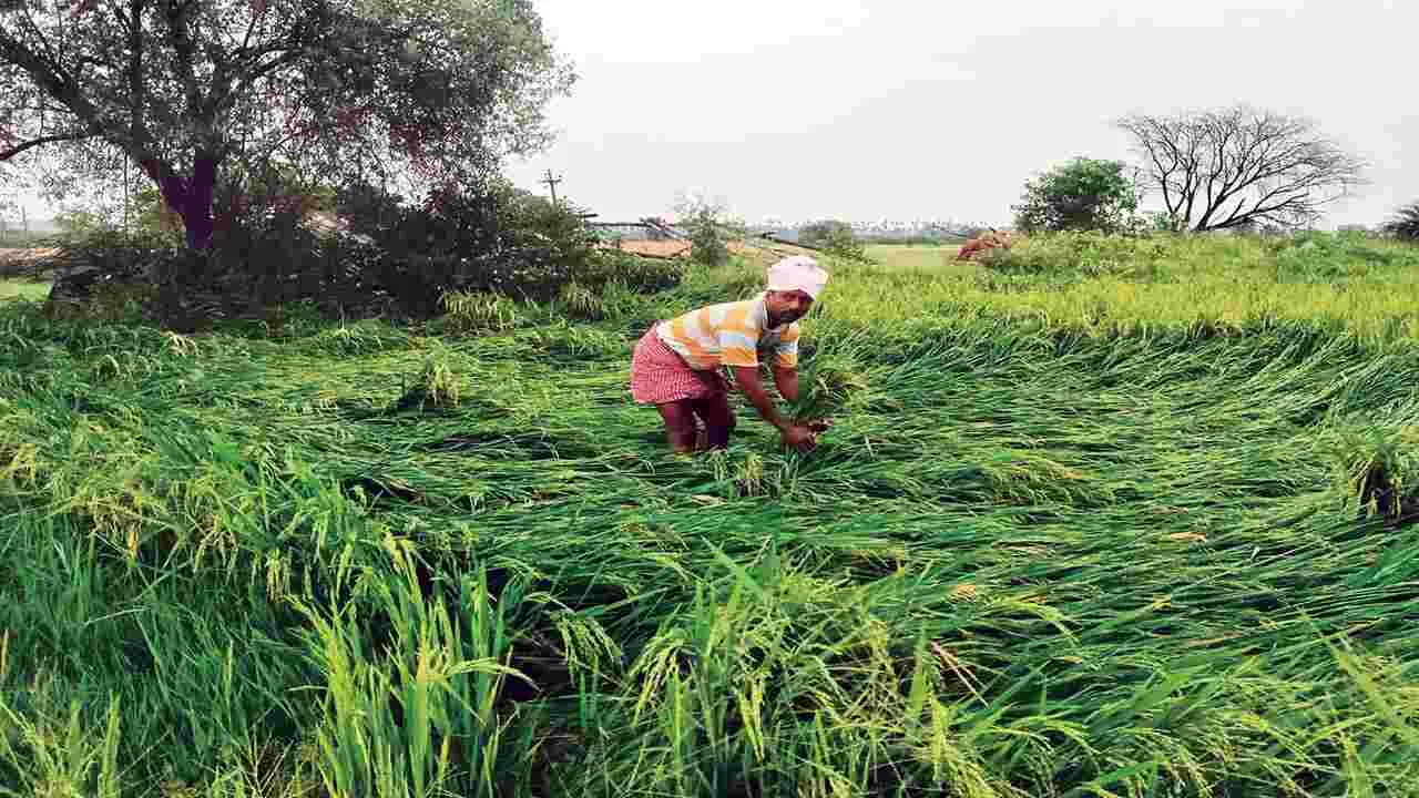 - నేలవాలిన వరి, మొక్కజొన్న తదితర పంటలు