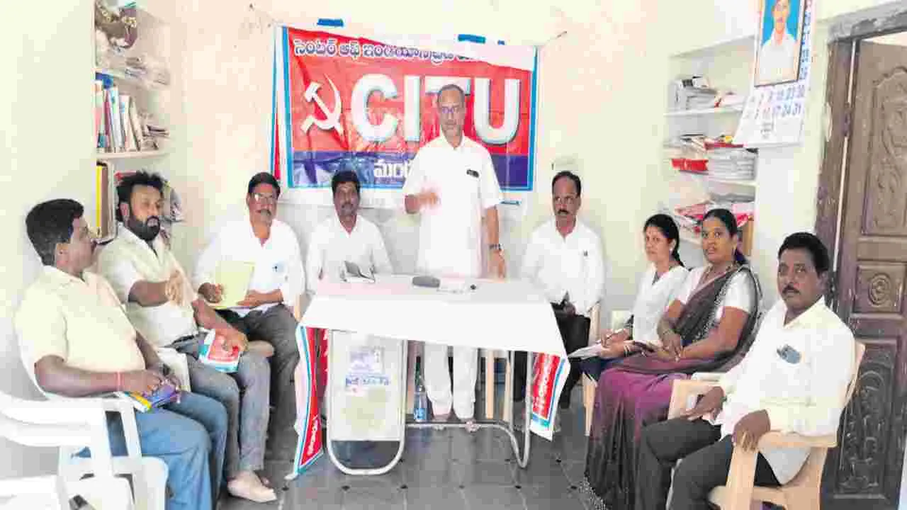 నారాయణపేట, జూన్ 5 (ఆంధ్రజ్యోతి): ఈనెల తొమ్మిదో తేదీన నిర్వహించనున్న కార్మి క, కర్షక సమ్మెను విజయవంతం చేయాలని సీఐటీయూ రాష్ట్ర ఉపాధ్యక్షుడు భూపాల్ పిలుపునిచ్చారు. గురువారం నారాయణపేట పట్టణంలోని సీఐటీయూ కార్యాలయంలో నిర్వహించిన యూనియన్ ముఖ్య నాయకుల సమావేశాన్ని ఉద్ధేశించి ఆయన మాట్లాడారు. కార్మిక చట్టాలను సవరించి కొన్నింటిని రద్దు చేసి యజ మానులకు అనుకూలంగా ప్రధాని నరేంద్ర మోదీ నాయకత్వంలో ఎన్డీఏ ప్రభుత్వం తీసు కొచ్చిన నాలుగు లేబర్ కోడ్లు రద్దు చేయాలని డిమాండ్ చేశారు. ముందుగా మే 20న దేశ వ్యాప్త సమ్మెకు కార్మిక సంఘాలు పిలుపునివ్వగా పహల్గాంలో ఉగ్ర ఘటన, ఆ తర్వాత భారత్, పాక్ మధ్య యుద్ధ వాతావరణంతో సమ్మెను ఈనెల తొమ్మిదో తేదీకి వాయిదా వేశామన్నారు. జిల్లా వ్యాప్తంగా కార్మిక, కర్షకులు పాల్గొని సమ్మెను విజయవంతం చేయాలన్నారు. సీఐటీయూ జిల్లా అధ్యక్షుడు వెంకట్రామిరెడ్డి, బాల్రామ్, ఆంజనేయులు, గోవింద్రాజ్, కాశీనాథ్, బాలమణి, సాయిలు, కృష్ణ ఉన్నారు.