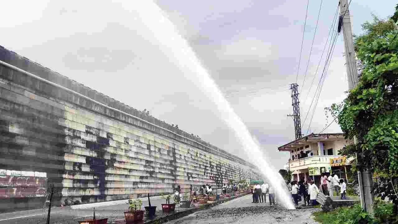 ఫ్లైఓవర్ రహదారిపైకి విరజిమ్మిన నీళ్లు
