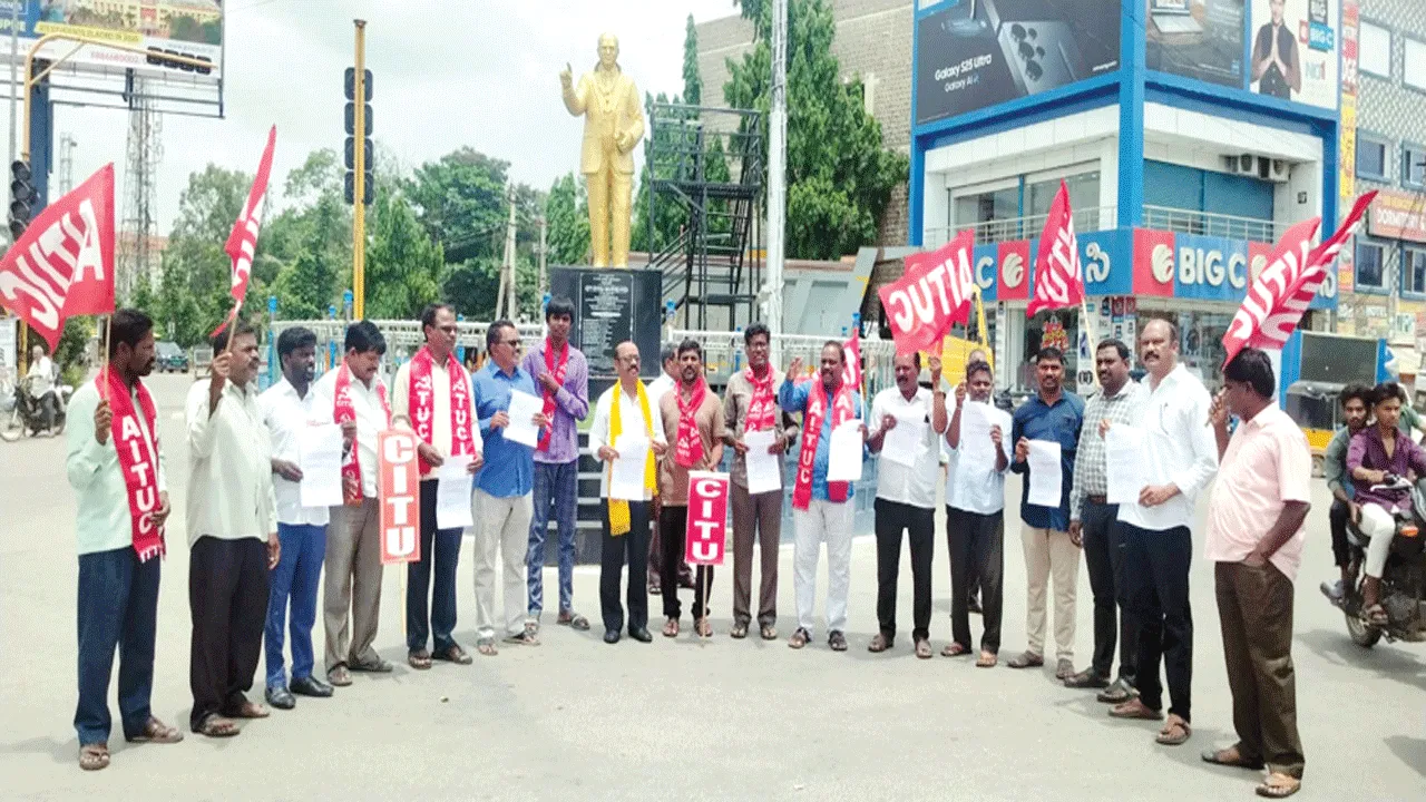 పాలమూరు, జూలై 7 (ఆంధ్రజ్యోతి) : ఈనెల 9న దేశవ్యాప్తంగా చేపట్టిన సమ్మెను విజయవంతం చేయాలని టీయూసీఐ రాష్ట్ర ఉపాధ్యక్షుడు వెంకటేష్ కార్మికులకు పిలుపునిచ్చారు. సోమవారం జిల్లా కేంద్రంలోని వ్యవసాయ మార్కెట్లో సమ్మె పోస్టర్ను ఆవిష్కరించి, మాట్లాడారు. కార్మికులు సాధించుకున్న 29 కార్మిక చట్టాలను రద్దు చేసి, నాలుగు లేబర్ కోడ్లను తీసుకురావటం సరికాదన్నారు. నాలుగు కోడ్ల ద్వారా రెగ్యులర్ ఉద్యోగుల ఉద్యోగ భద్రతకు ముప్పు వాటిల్లనుందన్నారు. నాలుగు కోడ్లు అమలైతే 300 మంది లోపు కార్మికులు పనిచేసే కంపెనీ, పరిశ్రమలో సంస్థ యజమాన్యాలు ప్రభుత్వ అనుమతి లేకుండానే యథేచ్చగా కార్మికులను తొలగించవచ్చన్నారు. రైస్మిల్ సంఘం అధ్యక్షుడు దాసు, శేఖర్, ఆంజనేయులు, కృష్ణయ్య, బుజ్జి, వెంకటయ్య పాల్గొన్నారు.