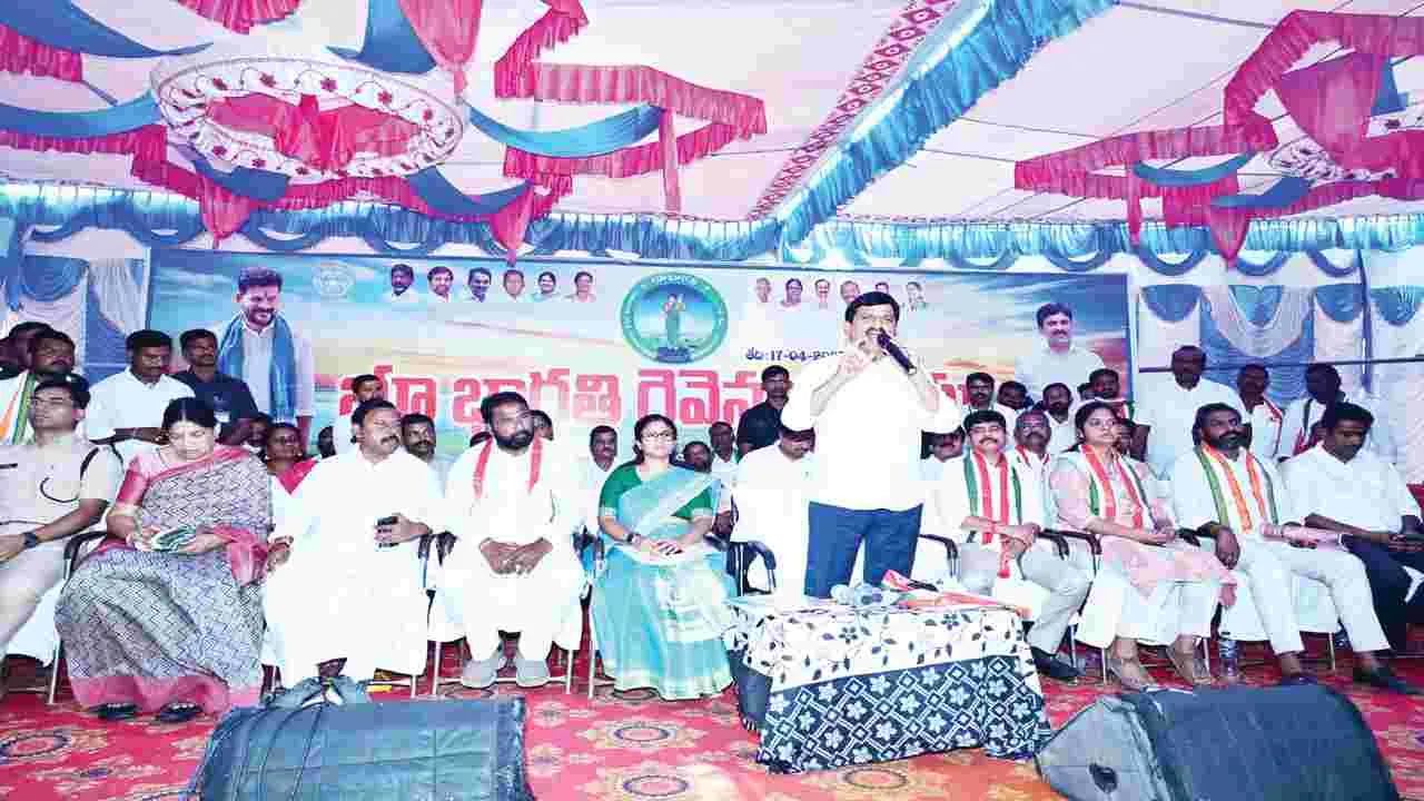 కొత్త చట్టం అమలైతే కాంగ్రెస్కు ఎక్కడ పేరు వస్తోందని ప్రతిపక్ష నాయకులు అబ ద్దపు ప్రచారాలు చేయడం జరుగుతోందన్నా రు. హక్కులు కల్గిన రైతులకు భూమిని సంక్రమింప చేయడమే ప్రభు త్వ విధానమన్నారు. రికా ర్డుల్లో చిన్న తప్పు ఉన్నా స్వంత భూమిని అమ్ముకోలేని పరిస్థితి ఉండేదనాన్నారు. వీటిని సరి చేసేందుకు జిల్లా కార్యాలయాల చుట్టూ రైతులు తిరిగినా ఫలితం దక్కని ధరణీ వల్ల ఉండేదన్నారు. వాటిలో ఉన్న చిక్కులు పేద రైతుల కష్టాలకు కారణంగా ఉండేదన్నారు. ధరణీ వల్ల రైతులు పడుతున్న కష్టాలు చూసిన ముఖ్యమంత్రి అధికారంలోకి రాగానే దానిని పాతాళగంగలో విసురుతామని హామీ ఇచ్చారన్నారు. ఆ హామీ మేరకే రైతుల కష్టాలను దూరం చేసేందకు భూభారతి చట్టం తీసుకువచ్చారన్నారు. దీనిని రాష్ట్ర వ్యాప్తంగా అమలు పరిచి రైతులకు తమ భూములపై భరోసా కల్పించనున్నట్లు తెలిపారు.