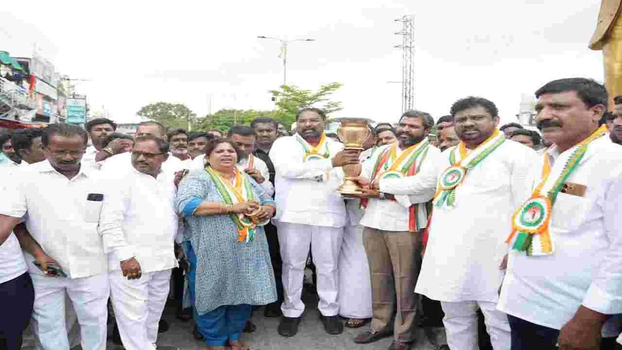 రాజీవ్గాంధీ సద్భావన జ్యోతి యాత్రకు మంత్రి వాకిటి శ్రీహరి మంగళవారం ఘన స్వాగతం పలికారు. కృష్ణ బ్రిడ్జి నుంచి బిలాల్పూర్ వరకు యాత్ర సాగింది. ఈ సందర్భంగా మంత్రి యాత్ర కాగడను అందుకొని, మాట్లాడారు.