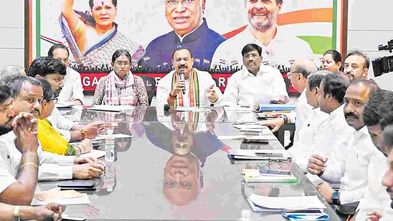 ఏడాది కాలంగా కార్పొరేషన్ పదవులు తీసుకున్నవారు అంత బాధ్యతగా పనిచేయడం లేదని అనుబంధ సంఘాలతో జరిగిన సమావేశంలో టీపీసీసీ చీఫ్ మహేశ్కుమార్గౌడ్ అన్నారు. ప్రతిపక్షాలు ప్రభుత్వాన్ని విమర్శిస్తుంటే, అప్రతిష్ఠపాలు చేస్తుంటే వెంటనే ఎందుకు స్పందిచడంలేదని ప్రశ్నించారు. ప్రభుత్వం అనేక సంక్షేమ, అభివృద్ధి కార్యక్రమాలు చేసినా ప్రజల్లోకి తీసుకెళ్లడంలో వెనుకబడి పోతున్నామన్నారు. వాటిపై గ్రామాల్లో ప్రచారం చేయాలని సూచించారు. కాగా, డీసీసీ అధ్యక్షుల నియామకాన్ని సెలక్ట్ అండ్ ఎలక్ట్ పద్ధతిలో చేపట్టాలని ఈ సందర్భంగా నిర్ణయించారు. అయితే తుది నిర్ణయం మాత్రం అధిస్ఠానానిదేనని మహేశ్గౌడ్ స్పష్టం చేశారు. ఇదిలా ఉండగా.. ఎమ్మెల్యే కోటా ఎమ్మెల్సీ పదవుల్లో ఒకటి దొమ్మాటి సాంబయ్యకు కేటాయించాలని ఎమ్మెల్యేలు కడియం శ్రీహరి, రేవూరి ప్రకాశ్రెడ్డి తదితరులు రాష్ట్ర వ్యవహారాల ఇన్చార్జి మీనాక్షి నటరాజన్ను కోరారు.
