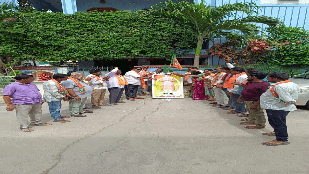 దేశంలో జీఎస్టీపై సంస్కరణలు తీసుకొచ్చిన భారత ప్రధాన మంత్రి నరేంద్ర మోదీ చిత్రపటానికి జిల్లా కేంద్రంలో ఆదివారం బీజేపీ సీనియర్ నాయకులు వన్ నేషన్ వన్ ఎలక్షన్ జిల్లా కన్వీనర్ అరిగెల నాగేశ్వర్రావు, బీజేపీ జిల్లా ప్రధాన కార్యదర్శి అరిగెల మల్లికార్జున్ యాదవ్ క్షీరాభిషేకం చేశారు.