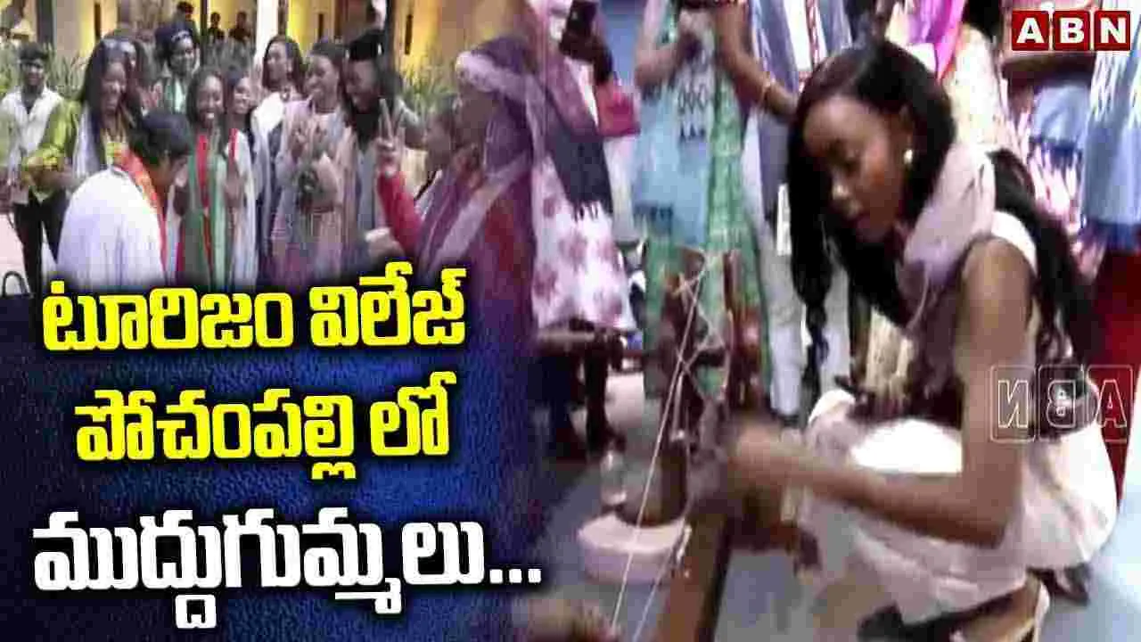 నల్గొండ, మే 15: మిస్ వరల్డ్ పోటీలకు వచ్చిన సుందరీమణులు మనస్సును భూదాన్ పోచంపల్లిలోని చేనేత చీరల డిజైన్లు కట్టిపడేశాయి. వివిధ దేశాల నుంచి వచ్చిన సుందరీమణులు గురువారం భూదాన్ పోచంపల్లిలోని గ్రామ చేనేత పార్క్ను సందర్శించారు. ఇక్కడి స్థానిక సంస్కృతి, కళలుతోపాటు సంగీతం విని వారు మైమరచిపోయారు. ఈ సందర్భంగా వారిని ఆహ్వానించేందుకు పలు కార్యక్రమాలను ప్రభుత్వం ఏర్పాటు చేసింది. ఇవి చూసి వారు తన్మయత్వానికి లోనయ్యారు. ఈ కార్యక్రమాలు వారిని కట్టిపడేశాయి. ఈ సందర్భంగా పార్క్ మ్యూజియంలోని స్టాళ్లను వారు సందర్శించారు. ప్రత్యేకమైన ఇక్కడి చీరల తయారీ విధానాన్ని స్థానికులను వారు స్వయంగా అడిగి తెలుసుకున్నారు. ఒక్క చీర తయారీ కోసం ఎంత కాలం పడుతుందంటూ వారు చేనేత కార్మికులను అడిగి తెలుసుకున్నారు. ఆ క్రమంలో కొందరు స్వయంగా రాట్నంతో నూలు వడికే ప్రయత్నం చేశారు.