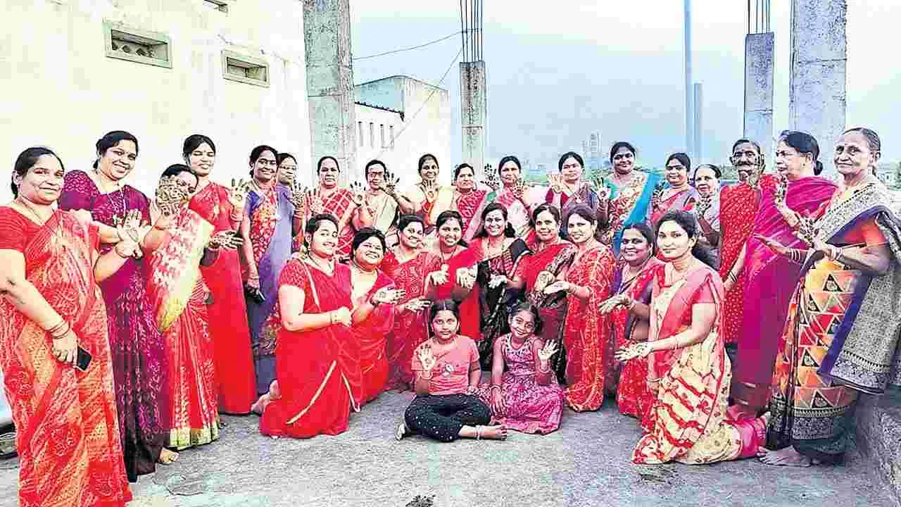 మఠంపల్లి, జూన 27(ఆంధ్రజ్యోతి): మండలకేంద్రంలోని ఆర్యవైశ్య సంఘం ఆధ్వర్యంలో శ్రీ వాసవీ సేవా మహిళా సంఘం సభ్యులు ఆషాఢమాసం గోరింటాకు పండుగను శుక్రవారం ఆనందోత్సవాల నడుమ వేడుకగా జరుపుకున్నారు. పెద్దసంఖ్యలో మహిళలు పాల్గొని గోరింటాకు పెట్టుకున్నారు. వివిధ రకాల డిజైన్లను గోరింటాకుతో చేతులపై పెట్టుకొని సందడి చేశారు. కార్యక్రమంలో సంఘం అధ్యక్షురాలు సంధ్యారాణి, ఉపాధ్యక్షులు చీదెళ్ల స్వాతి, కార్యదర్శులు వంగవేటి భూలక్ష్మి, కొత్తశ్యామల, వంగవేటి పద్మావతి, సంఘం కార్యవర్గ సభ్యులు తదితరులు పాల్గొన్నారు.