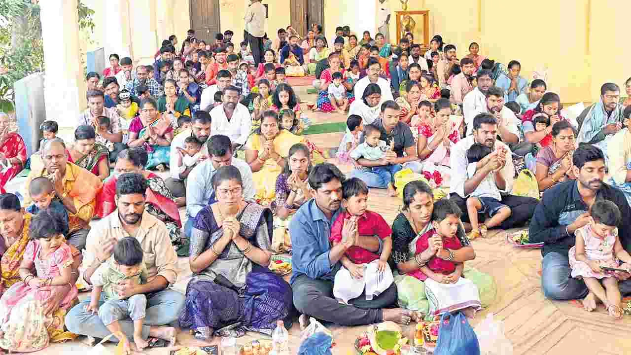 మిర్యాలగూడ రూరల్, ఫిబ్రవరి 3 (ఆంధ్రజ్యోతి) : నల్లగొండ జిల్లా మిర్యాలగూడ మండలంలోని అవంతీపురంలోని శ్రీదేవి, భూదేవి సమేత వేంకటేశ్వరస్వామి శాంతికల్యాణ మహోత్సవాన్ని సోమవారం ఘనంగా నిర్వహించారు. అదేవిధంగా ప్రతి ఏడాది వసంత పంచమిని పురస్కరించుకుని సరస్వతి ఆలయంలో నిర్వహించే అక్షరాభాస్య కార్యక్రమంలో భాగంగా చిన్నారులకు అక్షరభ్యాసాలు నిర్వహించారు. వేదపండితుల మంత్రోచ్ఛరణల మధ్య అంగరంగ వైభవంగా నిర్వహించిన ఈ వేడుకలను తిలకించేందుకు భక్తులు పెద్దసంఖ్యలో హాజరై తీర్థప్రసాదాలను స్వీకరించారు. ఎమ్మెల్యే బత్తుల లక్ష్మారెడ్డి, మాజీ ఎమ్మెల్యే తిప్పన విజయసింహారెడ్డి తదితరులు ప్రత్యేక పూజల్లో పాల్గొన్నారు. అవంతీపురంలో నిర్వహించిన శాంతికల్యాణ మహోత్సవం, సరస్వతీదేవి పూజా కార్యక్రమాలకు పట్టణ, మండల పరిసర ప్రాంతాల భక్తుల రాకతో జాతర వాతావరణం నెలకొంది. ఆలయం వద్ద ఏర్పాటు చేసిన అన్నదాన కార్యక్రమంలో భక్తులు విశేషంగా పాల్గొని అన్నప్రసాదాలను స్వీకరించారు. భక్తులకు ఎలాంటి ఇబ్బందులు లేకుండా ఆలయ కమిటీ సభ్యులు, రూరల్ పోలీసులు ఏర్పాట్లు చేపట్టారు.