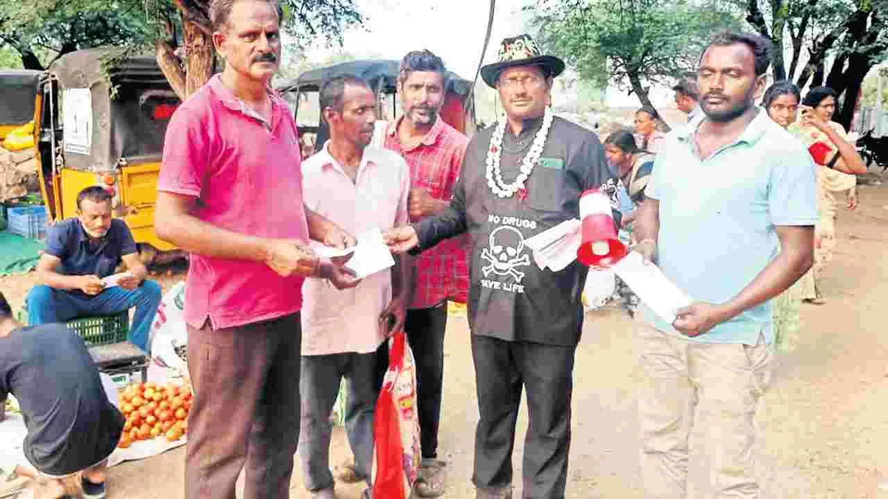 మత్తుకు బానిసలై జీవితాలను దెబ్బతీసుకుంటున్న వారి సంఖ్య ఇటీవల పెరిగింది. ఇలాంటి పరిస్థితుల్లో సమాజంలో మార్పు రావాలని మత్తుకు బానిసలు కావద్దని, వాటితో అనేక అనర్థాలు ఉన్నాయని తెలిపేందుకు ప్రభుత్వ ఉపాధ్యాయుడు రాచకొండ ప్రభాకర్ తనవంతు ప్రయత్నాలు చేస్తున్నాడు.