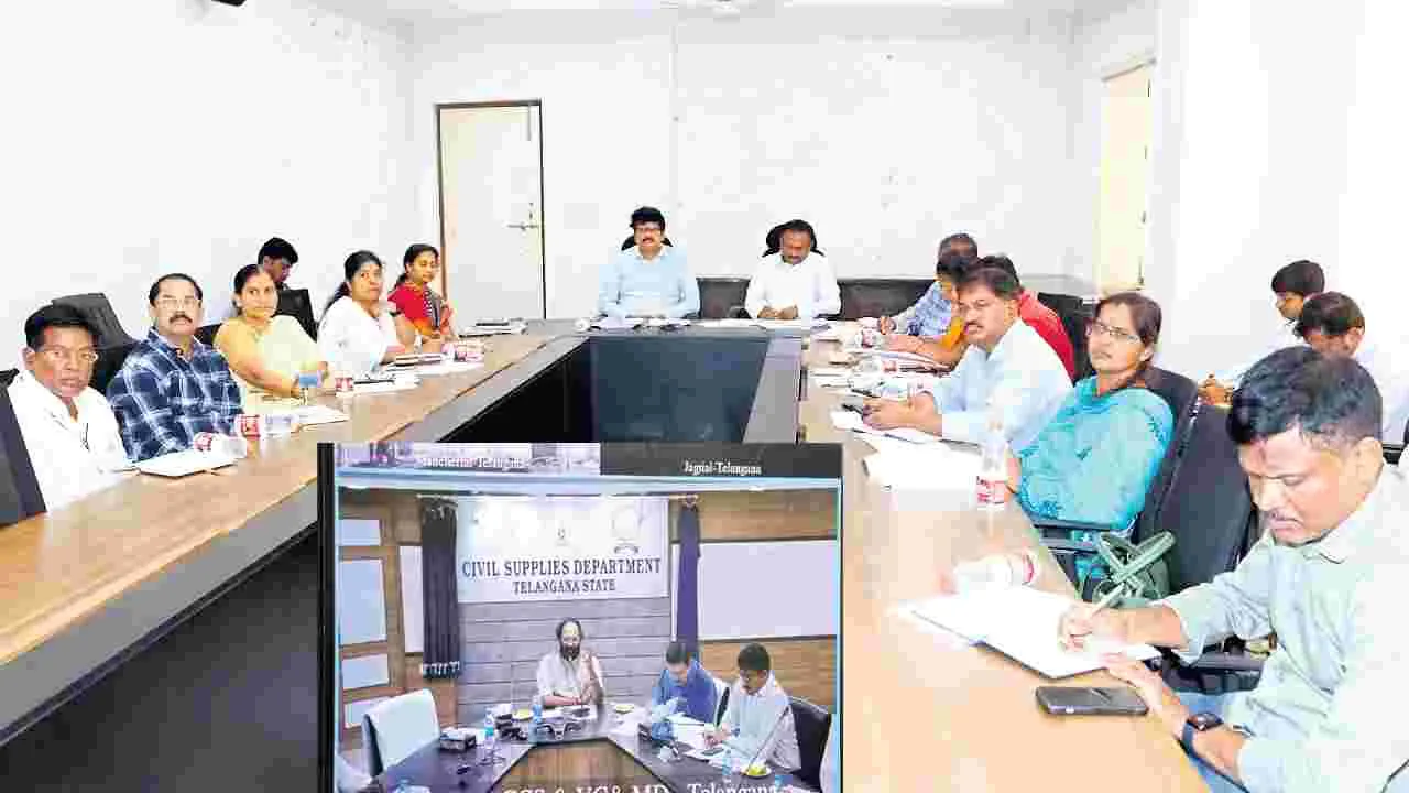 అధికారులు అత్యంత ప్రాధాన్యం ఇచ్చి రానున్న 15 రోజుల్లో ధాన్యం కొనుగోళ్ల లక్ష్యాన్ని పూర్తిచేయాలని పౌరసరఫరాలశాఖ మంత్రి ఉత్తమ్కుమార్రెడ్డి, వ్యవసాయశాఖ మంత్రి తు మ్మల నాగేశ్వరరావు అన్నారు. బుధవారం హైదరాబాద్ నుంచి పౌరసరఫరాలశాఖ కమిషనర్ డీఎస్ చౌహాన్తో కలిసి నిర్వహించిన వీడియో కాన్ఫరెన్స్లో వారు మాట్లాడారు.