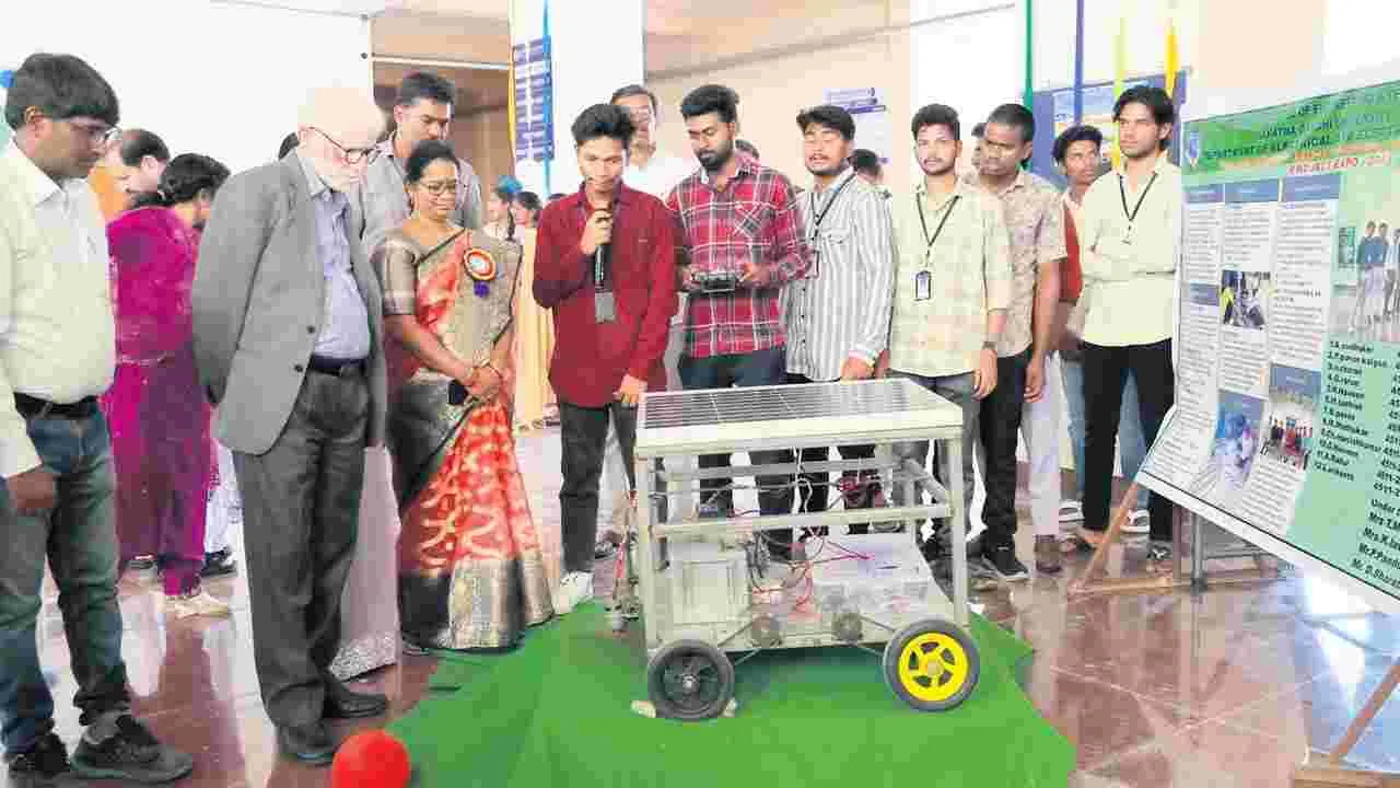 నల్లగొండ, జూన 27 (ఆంధ్రజ్యోతి): నైపుణ్యాలు కలిగిన ఇంజనీర్లను దేశానికి అందించేలా కృషి చేస్తామని ఎంజీయూ ఉపకులపతి ఆచార్య అల్తాఫ్ హుస్సేన అన్నారు. నల్లగొండ జిల్లా కేంద్ర సమీపంలోని ఎంజీయూలో శుక్రవారం ఇంజనీరింగ్ కళాశాల ఆధ్వర్యంలో నిర్వహించిన వైజ్ఞానిక ఆవిష్కరణల ప్రదర్శనను ఆయన ప్రారంభించి, మాట్లాడారు. నైపుణ్యాలు కలిగిన మానవవనరుల ఉత్పత్తి లక్ష్యంగా స్థాపించిన ఎంజీ యూనివర్సిటీ లక్ష్యం దిశగా పయనానికి నేటి వైజ్ఞానిక ప్రదర్శన నిదర్శనమన్నారు. విద్యార్థులు తమ అధ్యాపకుల ప్రోత్సాహంతో చేసిన ఆవిష్కరణలు వారి సున్నితత్వానికి, సామాజిక స్పృహకు నిదర్శనమన్నారు. విశ్వ విద్యాలయ రూ.3.5లక్షల ఆర్థిక సహకారంతో ఎనిమిది మంది విద్యార్థుల సామర్థ్యం కలిగిన సోలార్ క్యాంపస్ కారును రూపొందించడం హర్షించదగ్గ విషయమన్నారు. నాలుగు గంటలు పూర్తి చార్జింగ్తో 90 కిలోమీటర్ల వరకు ప్రయాణించవచ్చన్నారు. అధునాత వాహనాల్లో ఉండే సౌకర్యాలను కల్పించడంలో విద్యార్థులు పడిన తపన స్పష్టంగా కనిపిస్తోందన్నారు. క్యాంపస్ కారుతో పాటు ఆటోమెటిక్ ఫ్లోర్క్లీనర్, వాయిస్ కంట్రోల్ స్మార్ట్ డస్ట్బిన, ఫొటోగ్రఫిక్ క్లాక్, వీసీఆర్ బేస్డ్ రిప్రజేటర్, ఎమర్జెన్సీ అలర్ట్సిస్టమ్, ఆటోమెటిక్ కూలర్ కంట్రోల్ సిస్టమ్, ఎలకి్ట్రక్ స్కూటర్, సోలార్ గ్రాస్ కట్టర్, అంబులెన్స డ్రైవర్స్ ఉపయోగించే సిగ్నలింగ్, ఎలకి్ట్రక్ స్కూటర్ వంటి ప్రాజెక్టులను రూపకల్పన చేశారన్నారు. కార్యక్రమంలో ప్రిన్సిపాల్ సీహెచ.సుధారాణి, ఇనస్ట్రక్టర్ డ్రైవర్ ఆకుల రవి, డీన ఆచార్య రేఖ, మౌనిక, అవినాష్, జయంతి, నాగరాజు, మానేశ్వర్రావు, జ్యోతిరాణి, శ్రీనివా్సతో పాటు విద్యార్థులు, తదితరులు ఉన్నారు.