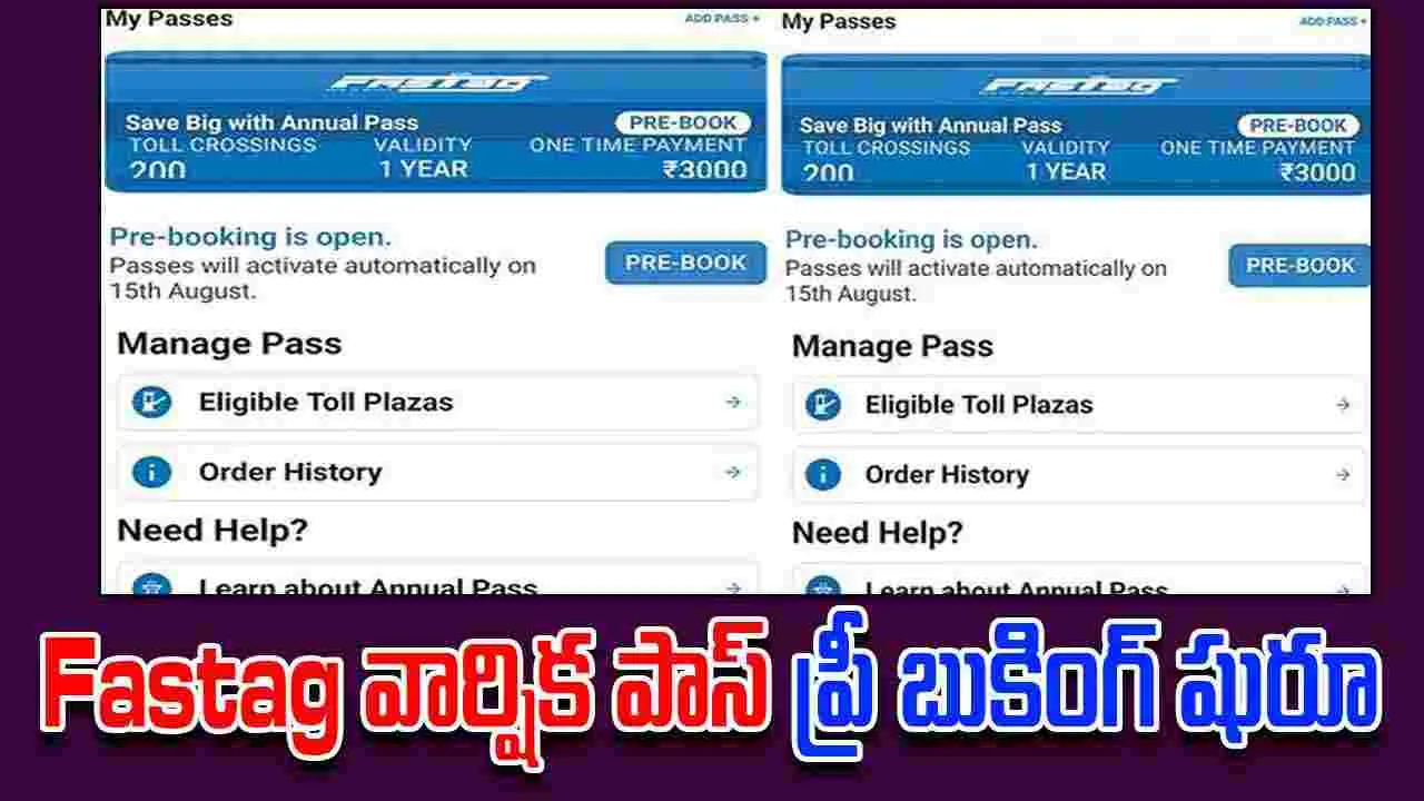 ఫాస్టాగ్ వార్షిక పాస్ ప్రీ బుకింగ్ను మంగళవారం అర్ధరాత్రి నుంచే భారత జాతీయ రహదారుల ప్రాధికార సంస్థ (ఎన్హెచ్ఏఐ) ప్రారంభించింది.