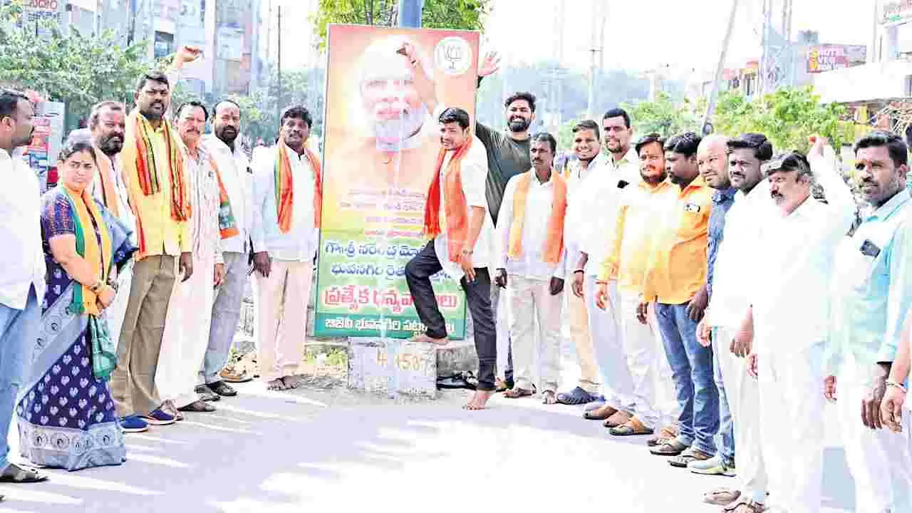 భువనగిరి టౌన్, జనవరి 1 (ఆంధ్రజ్యోతి): పీఎం కిసాన్ సమ్మాన్ నిధిని రూ.6 వేల నుంచి రూ.10వేలకు పెంపు, దేశవ్యాప్తంగా రెండు కోట్ల ఇళ్ల నిర్మాణం ద్వారా ప్రధాని మోదీ ప్రజలకు నూతన సంవత్సర కానుక ఇచ్చారని బీజేపీ భువనగిరి పట్టణ శాఖ అధ్యక్షుడు రత్నపురం బలరాం, జిల్లా ఉపాధ్యక్షుడు పట్నం శ్రీనివాస్ అన్నారు. భువనగిరిలో ప్రధాని ఫ్లెక్సీకి బుధవారం క్షీరాభిషేకం చేశారు. కార్యక్ర మంలో జిల్లా ప్రధాన కార్యదర్శి చందా మహేందర్ గుప్తా, చందుపట్ల వెంకటేశ్వరరావు, వైజయంతి, పాదరాజు, ఉమా శంకర్రావు, జనగాం నరసింహచారి తదితరులు పాల్గొన్నారు.