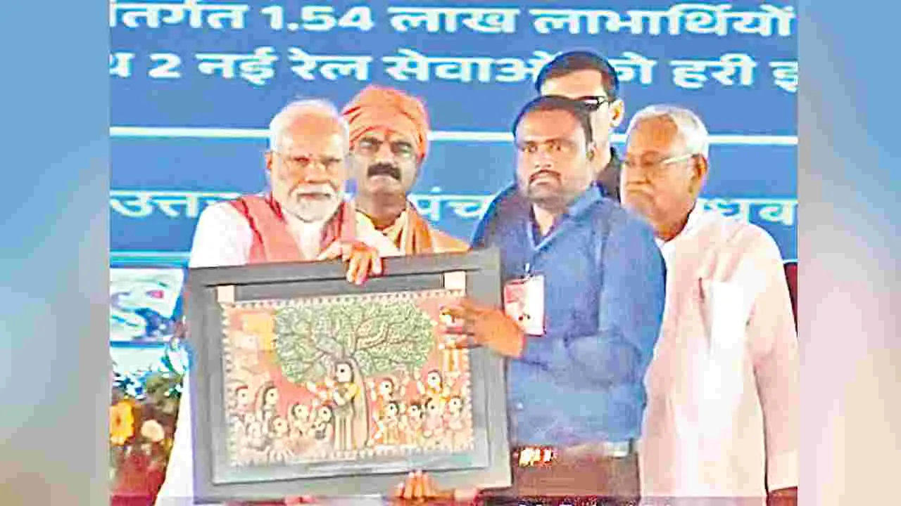 ప్రధాని నరేంద్రమోదీ చేతుల మీదుగా అవార్డు అందుకున్న పంచాయతీ కార్యదర్శి