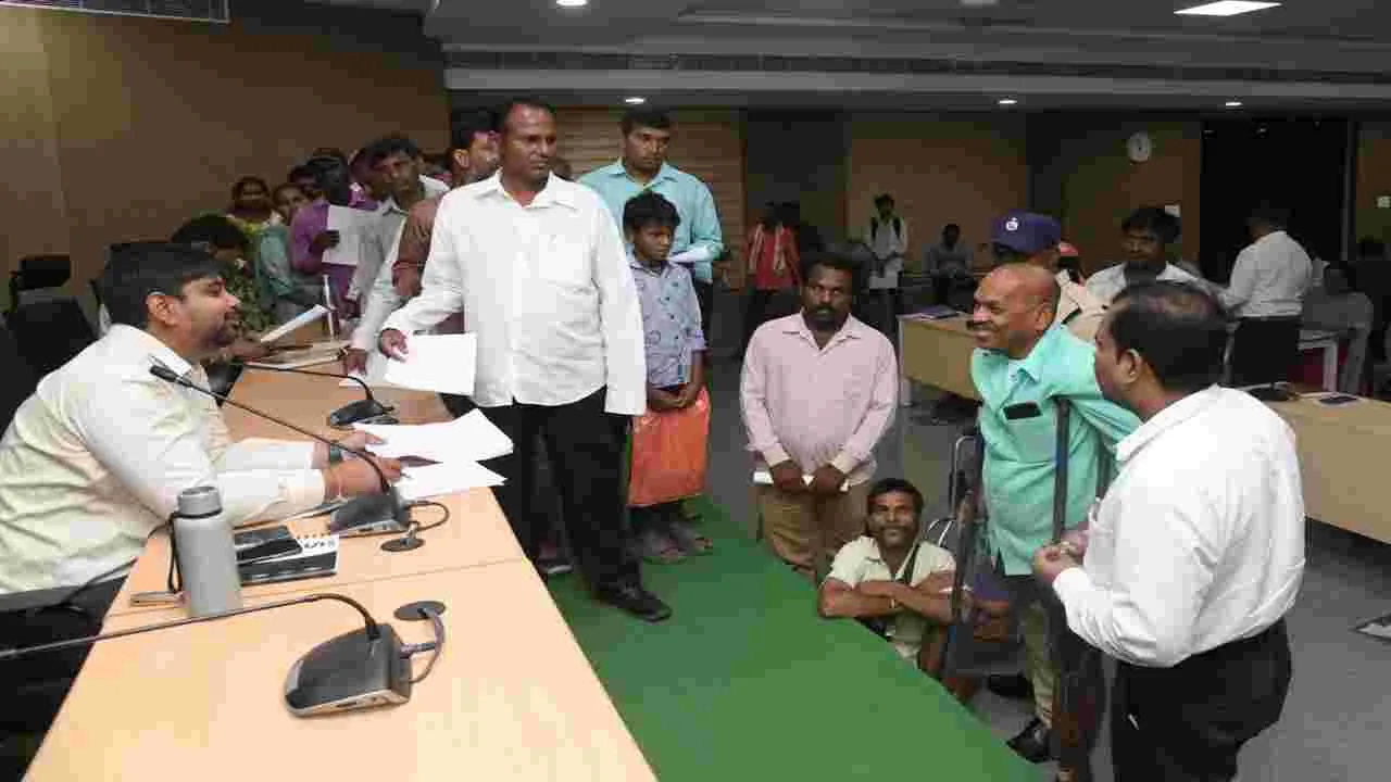 కలెక్టరేట్, మార్చి24 (ఆంధ్రజ్యోతి): ప్రజావాణి అందిన దరఖాస్తుల పరిష్కారానికి ప్రత్యేక చర్యలు తీసుకోవాలని కలెక్టర్ కుమార్ దీపక్ అన్నారు. సో మవారం జిల్లాలోని నస్పూర్లో గల సమీకృత జిల్లా కార్యాలయంలో దరఖాస్తులు స్వీకరించారు. మంద మర్రి మండలం ఊరు రామకృష్ణాపూర్కు చెందిన మెంగని శ్రీనివాస్ మందమర్రి శివారులోని తన భూమిని తెలియకుండా అక్రమంగ పట్టా చేసుకు న్నారని, ఈ విషయంపై న్యాయస్థానంలో కేసు కొన సాగుతున్నందున ఈ భూమి ఎలాంటి లావాదే వీ లు, పట్టా మార్పులు జరుకుగండా చర్యలు తీసు కో వాలని కోరారు. తెలంగాణ దివ్యాంగుల ఐక్యవేదిక ప్రతినిధి నగురారపు సుమన్ దరఖాస్తులో ప్రభు త్వం తలపెట్టిన ఇందిరమ్మ ఇండ్లను ప్రతి దివ్యాం గుడికి కేటాయించాలని, 40శాతం వైకల్యం కలిగిన దివ్యాంగులకు అంత్యోదయ ురేషన్కార్డు జారీ చేయా లని, రాజీవ్ యువ వికాసం పథకంలో దివ్యాంగులు దరఖాస్తు చేసుకునేలా అవకాశాం కల్పించాలని, ఇ చ్చిన హామీ మేరకు పెంఛన్ పెంచాలని, సదరం శిబిరాలలో స్లాట్లను 100కు పెంచాలని కోరారు. క లెక్టర్ మాట్లాడుతూ ప్రజావాణి కార్యక్రమంలో అం దిన దరఖాస్తులను క్షేత్రస్థాయిలో పరిశీలించి పరి ష్కరించే దిశగాచర్యలు తీసుకుంటామని తెలిపారు.