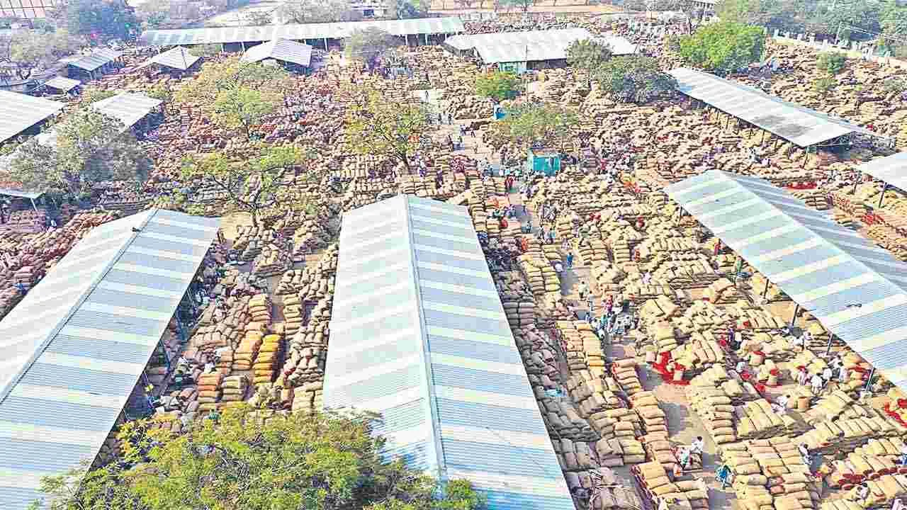 మార్కెట్లలో ఎటు చూసిన మిరప బస్తాలే కనిపించాయి. సోమవారం సుమారు లక్షా 20 వేల మిర్చి బస్తాలు ఖమ్మం మార్కెట్కు రాగా, వరంగల్ ఎనుమాముల మార్కెట్కు 80 వేల మిర్చి బస్తాలు వచ్చాయి.