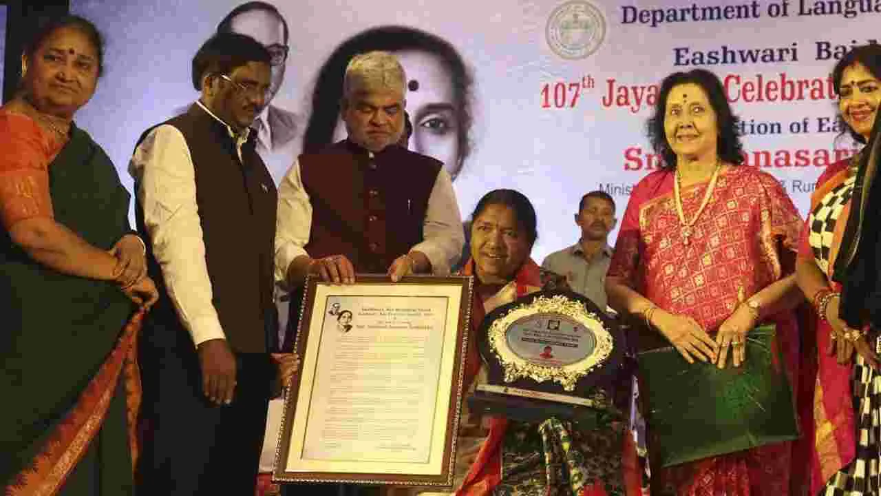 Minister Seetakka: సీతక్కకు ఈశ్వరీబాయి స్మారక పురస్కారం
