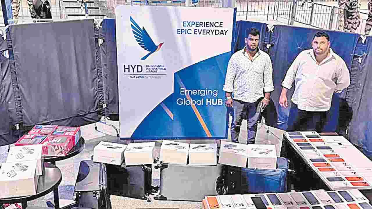 శంషాబాద్ రూరల్, నవంబరు 12 (ఆంధ్రజ్యోతి): శంషాబాద్ అంతర్జాతీయ విమానాశ్రయంలో ఓ ప్రయాణికుడి నుంచి 4.3 కిలోల గంజాయిని (డీఆర్ఐ) డైరెక్టర్ ఆఫ్ రెవెన్యూ ఇంటెలిజెంట్ అధికారులు స్వాధీనం చేసుకున్నారు. బ్యాంకాక్ నుంచి సలీం అనే ప్రయాణికుడు ఇండిగో విమానంలో బుధవారం తెల్లవారుజామున శంషాబాద్ ఎయిర్పోర్టుకు చేరుకున్నాడు. డీఆర్ఐ అధికారులు అతడి బ్యాగులు తనిఖీ చేయగా 4.3 కేజీల గంజాయి ఉన్నట్లు గుర్తించారు. దీంతో నిందితుడిని అదుపులోకి తీసుకున్నారు. దీని విలువ దాదాపు రూ.4.3 కోట్లు ఉంటుందని.. కేసు నమోదు చేసి దర్యాప్తు చేస్తున్నట్లు అధికారులు తెలిపారు. ఇటు ఎలకా్ట్రనిక్ వస్తువులను అక్రమంగా రవాణా చేస్తున్న మరో ఇద్దరు నిందితులను కూడా కస్టమ్స్ అధికారులు అరెస్టు చేశారు. సూర్యప్రకాశ్రాజు, మహ్మద్ జహంగీర్ అనే ఇద్దరు ప్రయాణికులు మంగళవారం అర్ధరాత్రి అబుదాబి ఈవై 358 విమానంలో శంషాబాద్ ఎయిర్పోర్టుకు చేరుకున్నారు. వారి బ్యాగులు తనిఖీ చేయగా.. నిషేధిత 8 డీజేఐ డ్రోన్లు, 65 ఐఫోన్లు, 2 ల్యాప్టా్పలు, 20 యాపిల్ వాచ్లు, తదితర ఎలకా్ట్రనిక్ వస్తువులున్నట్లు గుర్తించారు. వాటికి సంబంధించి ఎలాంటి పత్రాలు లేకపోవడంతో సీజ్ చేశారు. వాటి విలువ రూ.1.4కోట్లు ఉంటుందని కస్టమ్స్ అధికారులు వెల్లడించారు.