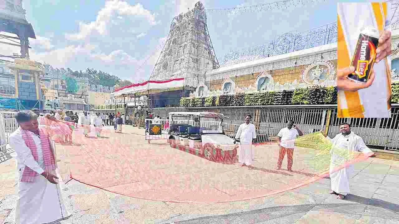 ఫొటోలో కనిపిస్తున్న ఈ చీర పొడవు ఐదున్నర అడుగులు. వెడల్పు 48 ఇంచులు. ఇది అగ్గిపెట్టెలో ఇమిడిపోతుంది. సిరిసిల్లకు చెందిన చేనేత కార్మికుడు నల్లా విజయ్ దీన్ని తన స్వహస్తాలతో రూపొందించారు. తిరుమల శ్రీవారికి సమర్పించేందుకు దీన్ని 15 రోజులు కష్టపడి తయారు చేసినట్లు విజయ్ తెలిపారు.