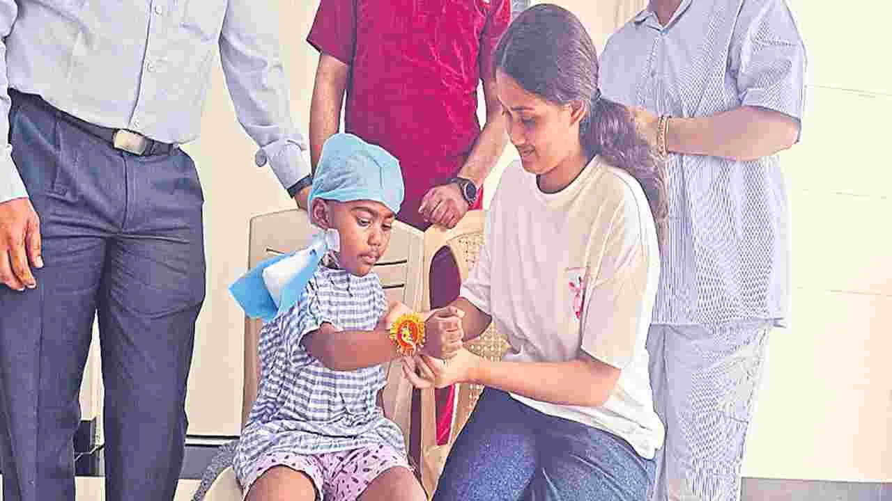 (ఆంధ్రజ్యోతి న్యూస్నెట్వర్క్): ఐదేళ్ల తమ్ముడికి తీవ్ర అనారోగ్య సమస్య వస్తే.. ఇంటర్ చదువుతున్న ఆ అక్క విలవిల్లాడిపోయింది. ఎముక మజ్జ దానం చేసి తమ్ముడికి ప్రాణదానం చేసింది. పూర్తిగా కోలుకున్న ఆ చిన్నారికి ఆస్పత్రిలోనే రాఖీ కట్టి ‘నీకు నేను రక్ష...’ అనే పండుగ సందేశాన్ని నిజం చేసింది. మహబూబ్నగర్కు చెందిన హస్మిత అనే బాలిక, ఎల్కేజీ చదువుతున్న తన తమ్ముడైన భరత్ రాంసింగ్ విషయంలో చాటుకున్న అనురాగమిది. కిమ్స్ ఆస్పత్రిలో భరత్ రాంసింగ్కు శస్త్రచికిత్స నిర్వహించారు. శనివారం ఆస్పత్రికొచ్చిన హస్మిత వైద్యుల సమక్షంలోనే సోదరుడికి రాఖీ కట్టింది. ఇక.. మహబూబాద్ జిల్లా కేసముద్రంలో పూలమ్మ, జయమ్మ, దేవ, నాగమ్మ నీలమ్మ అనే మహిళలు తమ సోదరుడికి ‘చివరిసారిగా’ రాఖీ కడుతూ కన్నీళ్లపర్యంతమయ్యారు. వీరి తమ్ముడు యాకన్న(50) అనారోగ్యంతో చనిపోయాడు. ఆయన చేతికి ఐదుగురు సోదరీమణులు రాఖీలు కట్టి కడసారి వీడ్కోలు పలికారు. రాఖీ పండుగ ఓ కుటుంబంలో విషాదాన్ని నింపింది. నిర్మల్ జిల్లా బాసరకు చెందిన వర్గంటి సాయిబాబా(19) అక్కతో రాఖీ కట్టుకునేందుకు నిజామాబాద్లోని గాజులపేట్కు స్కూటీపై వెళ్లాడు. గ్రామానికి తిరిగివస్తుండగా ఓ కంటెయినర్ను స్కూటీ ఢీకొనడంతో మృతిచెందాడు. ఖమ్మం జిల్లా తల్లాడ మండలం కలకొడిమ గ్రామంలో ఓ మహిళ అన్నకు రాఖీ కట్టేందుకు పుట్టింటికొచ్చి గుండెపోటుతో మృతిచెందింది. మధిర మండలం ఆత్మకూరుకు చెందిన హుస్సేన్బీ (52) ఇద్దరు అన్నలకు రాఖీ కట్టేందుకు కలకొడిమకొచ్చింది. పెద్దన్నకు రాఖీ కట్టి.. చిన్నన్న ఇంటికొచ్చి అతడికి రాఖీ కడుతూ కుప్పకూలి మృతిచెందింది.