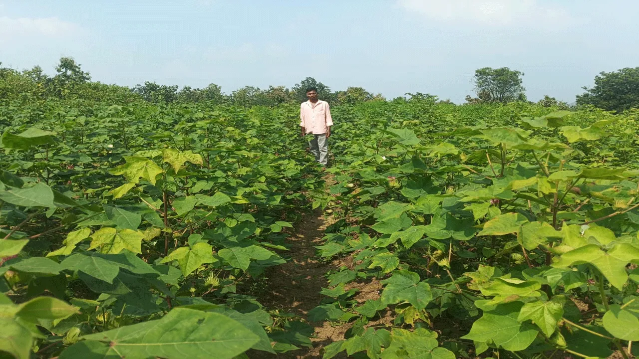 ఈ వానాకాలం సీజన్లో జిల్లా వ్యాప్తంగా సుమారు 4.10 లక్షల ఎకరాల్లో వివిధ రకాల పంటలను సాగు చేస్తున్నారు. జిల్లాలో ప్రధానంగా పత్తి పంట 3.35 లక్షల ఎకరాల్లో సాగవుతోందని అధికారిక లెక్కలు చెబుతున్నాయి. ఈ పంటకు ప్రధానంగా నల్ల రేగడి భూములు అనుకూలం. కానీ వరుసగా కురుస్తున్న అధిక వర్షాలతో ఈ భూముల్లో నీరు నిలువ ఉండే ఆవకాశాలు ఎక్కువగా ఉంటాయి. అధిక నీరు నిలువ కారణంగా పెరుగుదల ఆగి పోతుంది. కాత, పూత దశలో ఉన్న ఈ సమయంలో నిలువ ఉండడం మంచిది కాదు. రోజుల తరబడి ఉంటే మొక్కలు పెరిగి పోయే ప్రమాదం కూడా ఉంది. క్రమంగా రైతన్నలకు ఆశించిన దిగుబడి రాక పోవచ్చు. దిన్ని గుర్తించిన అధికారులు సాగుకు ముందు నుంచే పలువురి వ్యవసాయం క్షేత్రాల్లో మార్పులు తీసుకొచ్చారు. ఈ క్రమంలో కట్టలు కట్టుకుని వాటిపై విత్తనాలు విత్తి పత్తి సాగు చేస్తున్న ఈ రైతు కుడిమెత రమేశ్. జైనూరు మండలంలోని పోచంలొద్దికి చెందిన వాడు. వ్యవసాయ అధికారుల సూచనల ప్రకారం ఇలా సాగు చేస్తున్నాడు. అధిక వర్షాలకు చేనులో నీరు నిలువ ఉన్నా..పంటలకు ఇబ్బంది ఉండదని చెబు తున్నారు. ఈ ఏడాది అధిక దిగుబడి వస్తుందని చెబుతున్నాడు.