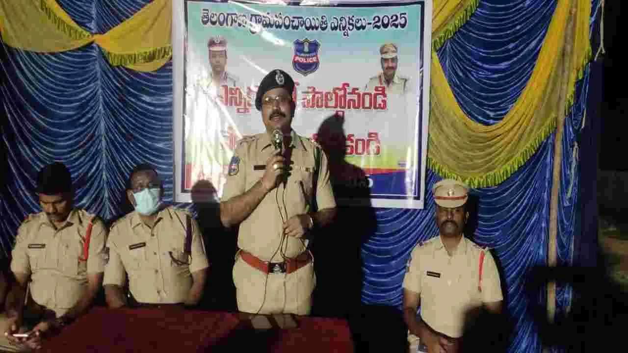దండేపల్లి నవంబరు 29 (ఆంధ్రజ్యోతి): స్థానిక సంస్థ ఎన్నికల నేపధ్యంలో ఎవరైన ఎన్నికల నియమావళిని అత్రికమిస్తే కఠిన చర్యలు తప్పవని మంచిర్యాల డిసీపీ ఎ గ్గడి భాస్కర్ హెచ్చరించారు. శనివారం రాత్రి మండంలోని వెల్గనూర్ గ్రామంలో ప్రజ లకు ఎన్నికలపై అవగాహన కల్పించారు. ఆయన మాట్లాడుతూ ప్రజలందరు ప్రశాం త వాతావరణలో స్థానిక సంస్థల ఎన్నికలు జరుపుకోవాలని సూచించారు. ఎవరైన ఓ టర్లను ప్రలోభాలకు గురి చేస్తే చట్టపరమైన చర్యలు తీసుకుంటామన్నారు. ఓటు హ క్కు కలిగిన ప్రతీ ఒకరు స్వేచ్చాయుతంగా తమ ఓటు హక్కును వినియోగించుకో వాలన్నారు. ఎన్నికలో ఎలాంటి అవాంనీయ సంఘటనలు జరగకుండా నిష్పక్షపా తం గా శాంతియుతంగా ఎన్నికలు జరిగే విధంగా బందోబస్తు ఏర్పాటు చేయడం జరుగు తుందన్నారు. శాంతిభద్రత విషయంలో ఎలాంటి రాజీలేదని నిబంధనలు ఉల్లంఘిం చిన వారిపై శాఖపరమైన చర్యలు తీసుకుంటామన్నారు. అనంతరం పలు అంశా ల పై ప్రజలకు వివరించారు. డిసీపీ వెంట మంచిర్యాల ఏసీపీ ప్రకాష్, లక్షెట్టిపేట సీఐ రమణమూర్తి. దండేపల్లి ఎస్సై తహసీనోద్ధీన్ , పోలీసు సిబ్బంది, ప్రజలు పాల్గొన్నారు.
