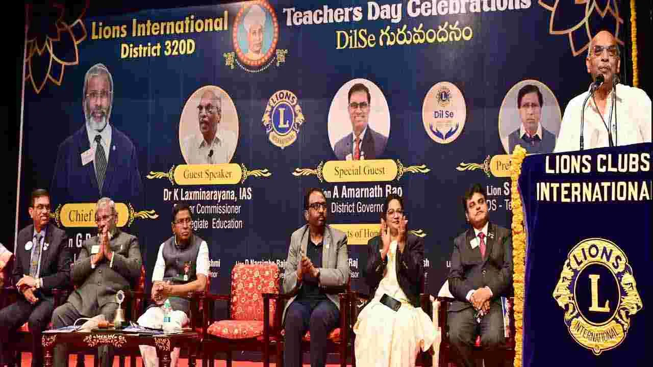 రవీంద్రభారతి, సెప్టెంబరు 7(ఆంధ్రజ్యోతి): సాంకేతికంగా ఎంత అభివృద్ధి చెందినా.. ఉన్నతమైన సమాజ నిర్మాణంలో ఉపాధ్యాయుల పాత్ర చాలా ముఖ్యమని విశ్రాంత ఐఏఎస్, ఉమ్మడి ఏపీ ఉన్నత విద్యా శాఖ మాజీ కమిషనర్ కె.లక్ష్మీనారాయణ పేర్కొన్నారు. ఉపాధ్యాయులకు సాంకేతికత ప్రత్యామ్నాయం కాదని చెప్పారు. ఏ దేశమైనా ఆర్థిక, సామాజిక, సాంస్కృతిక, రాజకీయ రంగాల్లో పురోగమించడానికి విద్య ప్రాణవాయువుగా నిలుస్తుందని అన్నారు. విద్యా రంగాన్ని మరింత పరిపుష్టం చేసుకునే దిశగా మనమంతా ఆలోచించాలని కోరారు. లయన్స్ ఇంటర్నేషనల్ డిస్ట్రిక్ట్ 320డీ ఆధ్వర్యంలో ఆదివారం రవీంద్రభారతి వేదికగా ‘దిల్సే గురువందనం’ పేరుతో ఉపాధ్యాయ దినోత్సవాన్ని ఘనంగా నిర్వహించారు. ఈ సందర్భంగా ఉమ్మడి రంగారెడ్డి, మెదక్, నిజామాబాద్, ఆదిలాబాద్ జిల్లాలకు చెందిన ప్రభుత్వ, ప్రైవేటు, మోడల్ స్కూళ్లలో సేవలందిస్తున్న 128 మంది ఉపాధ్యాయులను సత్కరించారు. అనంతరం కార్యక్రమానికి ముఖ్య వక్తగా హాజరైన లక్ష్మీనారాయణ మాట్లాడారు. చదువులు అనగానే ఇంజనీరింగ్, మెడిసిన్ మాత్రమే అనే అభిప్రాయం నుంచి తెలుగు వారు బయటపడాలని కోరారు. తల్లిదండ్రులు పిల్లల అభిరుచిని గుర్తించి, ఆయా రంగాల్లో ప్రోత్సహించాలని సూచించారు. ఆర్టిఫిషియల్ ఇంటెలిజెన్స్ కాలంలో తరగతి గదికి సాంకేతికత అనుసంధానం కావాలని, ఉపాధ్యాయులు నిత్య విద్యార్థులుగా ఉండాలని సూచించారు. పుస్తకం చదవడం ద్వారా జ్ఞానాన్ని, సమాజాన్ని అధ్యయనం చేయడం ద్వారా విజ్ఞానాన్ని, ఆత్మావలోకనం చేసుకోవడం ద్వారా దైవజ్ఞానాన్ని పొందగలమని చెప్పారు. తద్వారా సమాజంలో మన పాత్రను గ్రహించగలమన్నారు. ఈ శతాబ్దానికి తగినట్టుగా ముందుకు సాగాలంటే శాస్త్రీయ ఆలోచన, అభ్యాసన, సృజనాత్మకత, ఆత్మవిశ్వాసం చాలా అవసరమని వివరించారు. ఈ కార్యక్రమానికి సంస్థ జిల్లా కార్యదర్శి ప్రతాపరెడ్డి అధ్యక్షత వహించగా ఆల్ ఇండియా లయన్స్ కౌన్సిల్ చైర్మన్ బాబూరావు, డిస్ట్రిక్ట్ గవర్నర్ అమర్నాథరావు, లయన్స్ క్లబ్ ప్రతినిధులు జ్యోతి, విజయలక్ష్మి, గంప రమేష్, శ్రీనివాసరెడ్డి, ప్రవీణ్, జీఆర్ సూర్యరాజ్ తదితరులు పాల్గొన్నారు.